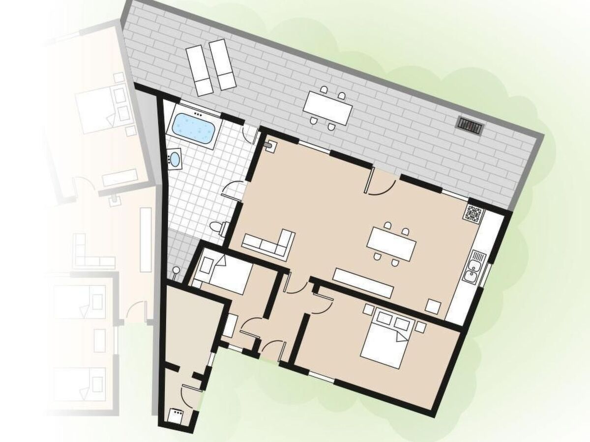 A 40 m², L-shaped, covered veranda, which cannot be seen, allows you to sit outside in almost any weather.