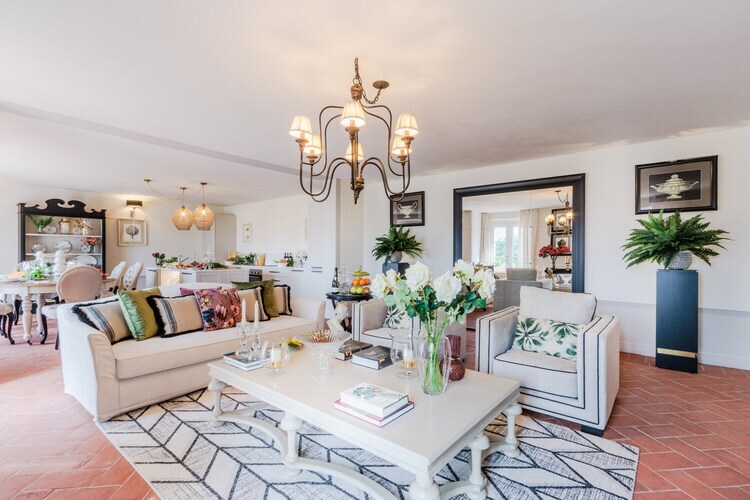 Avec en toile de fond des oliviers centenaires et des collines vallonnées, la villa offre une vue imprenable et une pelouse verdoyante encadrant l'espace piscine accueillant. Vous pourrez vous détendre sur un luxueux lit à baldaquin exclusif au coucher du soleil, admirer la vue imprenable depuis le jacuzzi intérieur grâce aux grandes portes-fenêtres, ou vous détendre dans le salon sur la terrasse de la piscine. Pour les amateurs de cuisine, la cuisine ultramoderne entièrement équipée facilite la préparation des repas, tandis que de nombreuses épiceries du quartier proposent des produits frais et locaux, enrichissant ainsi l'expérience gastronomique. Le confort moderne, comme la climatisation et le Wi-Fi, contribue au confort de votre séjour.