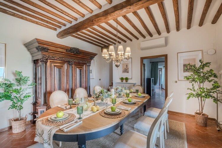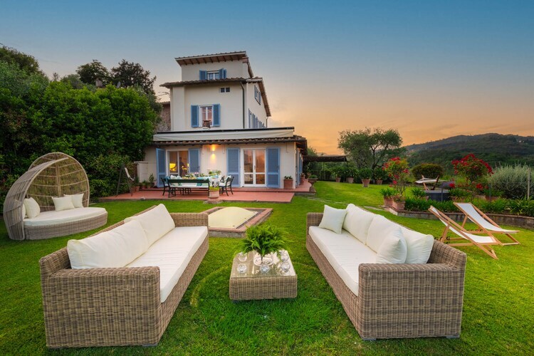Perchée sur une paisible colline, à seulement 10 minutes du centre historique de Lucques, la Villa Lontana offre un havre de paix luxueux au cœur d'oliveraies, de citronniers et de vignobles. Ce domaine de 450 m² allie charme toscan intemporel et élégance moderne, offrant une vue imprenable à 180 degrés sur la vallée de Lucques et une atmosphère sereine, idéale pour les familles ou les groupes.