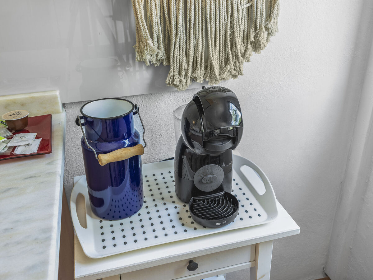 Cuisine ouverte (4 plaques vitrocéramiques, grille-pain, micro-ondes, cafetière électrique).