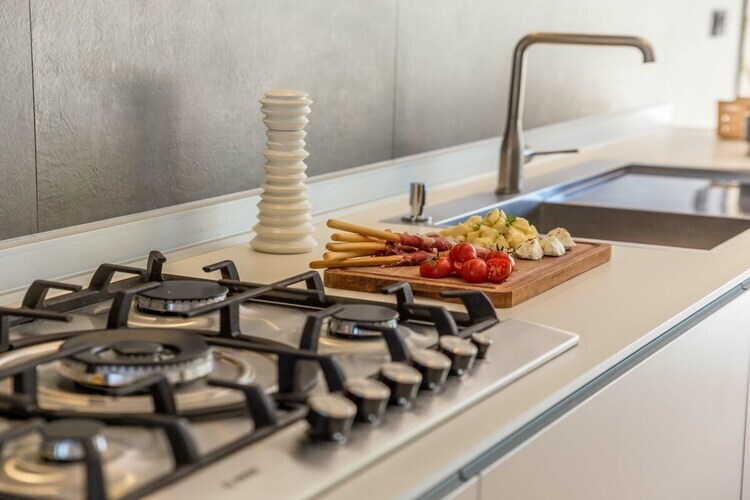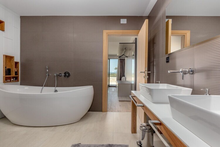 À l'étage, trois chambres avec lits doubles et salles de bains privatives vous attendent. L'une d'elles est équipée d'une magnifique baignoire, idéale pour des bains relaxants. Le rez-de-chaussée, spacieux et ouvert, comprend une cuisine italienne entièrement équipée, un coin repas confortable et un salon cosy donnant directement sur la terrasse de la piscine. De grandes baies vitrées offrent une vue imprenable sur la nature préservée qui entoure la villa, faisant de ce rez-de-chaussée un espace convivial pour se retrouver en famille ou entre amis.