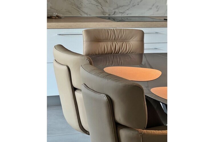 Le mobilier est d'un style surprenant et d'une qualité exceptionnelle. Le cuir, le bois naturel et le verre sont les matériaux prédominants.