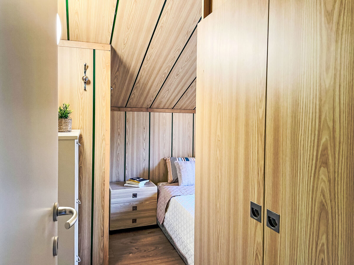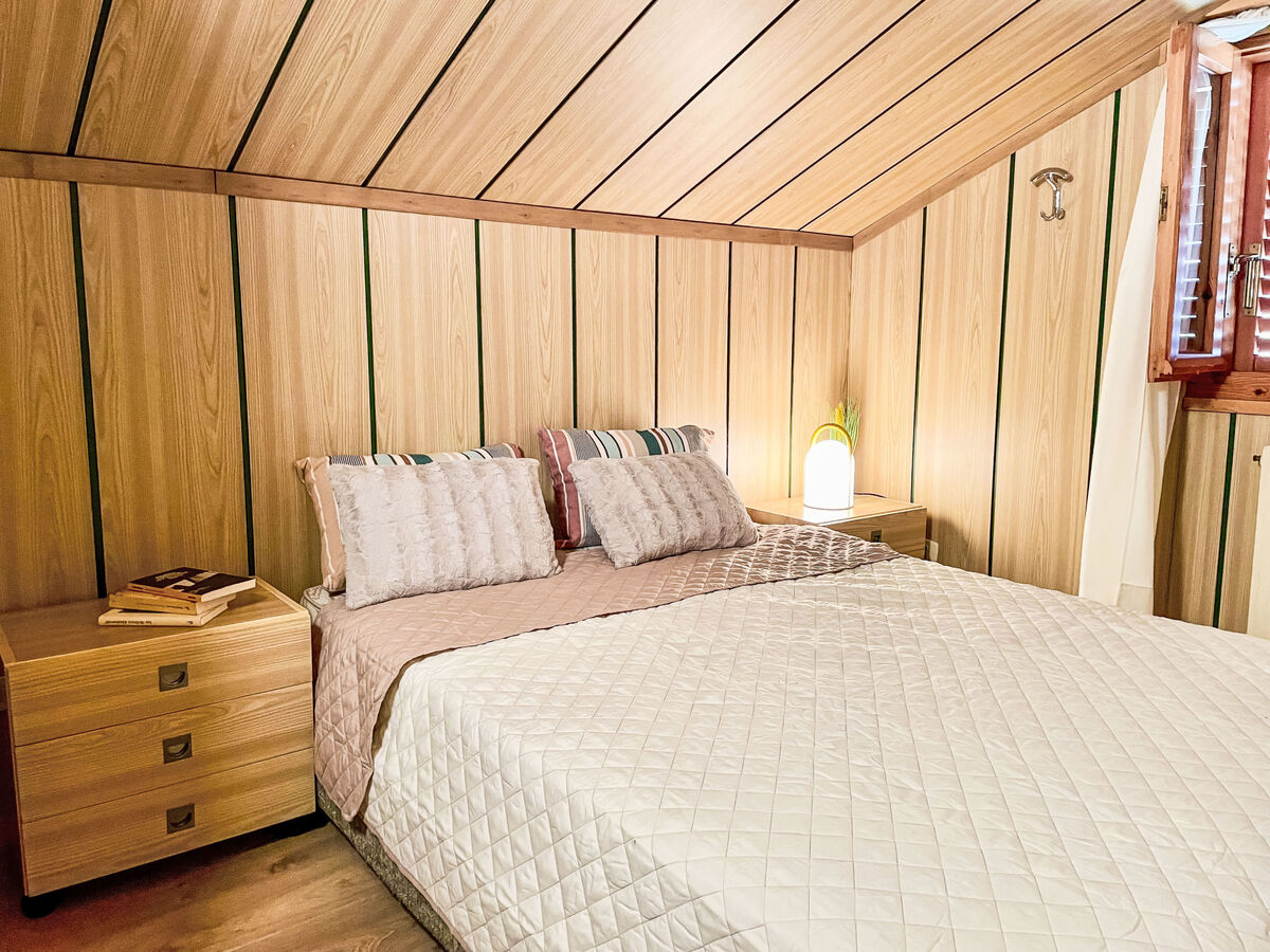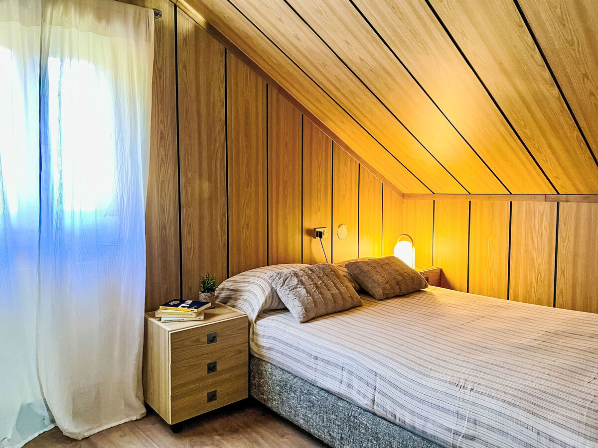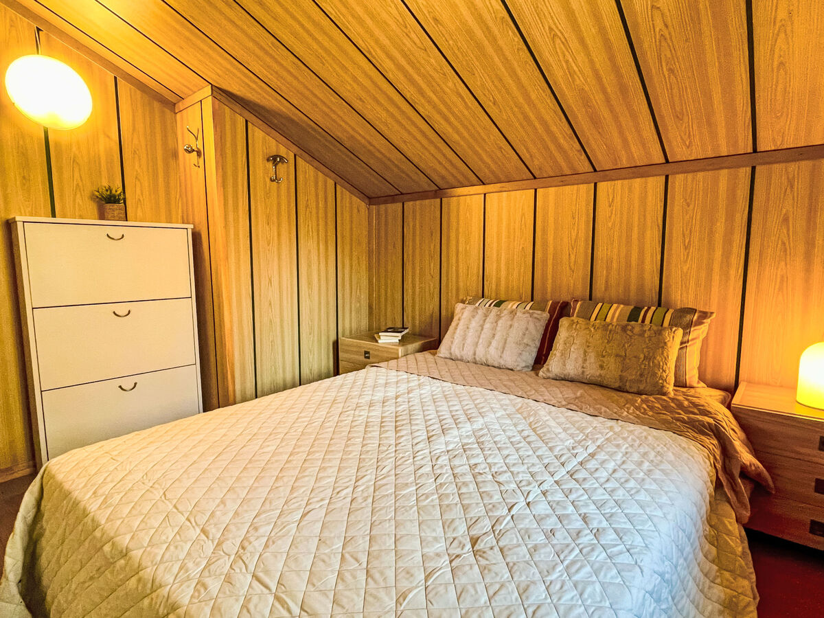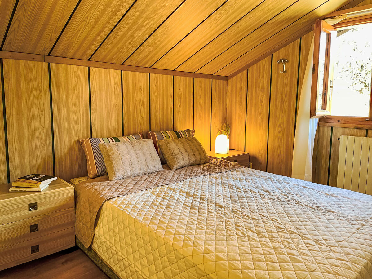 À l'étage supérieur: petit 1 chambre avec 1 lit double (140 cm, longueur 190 cm).