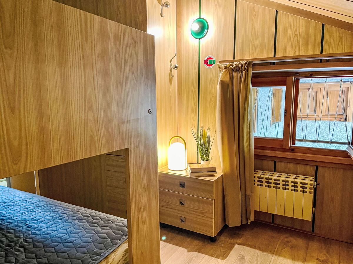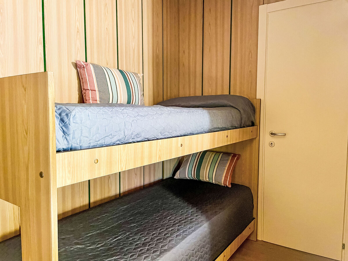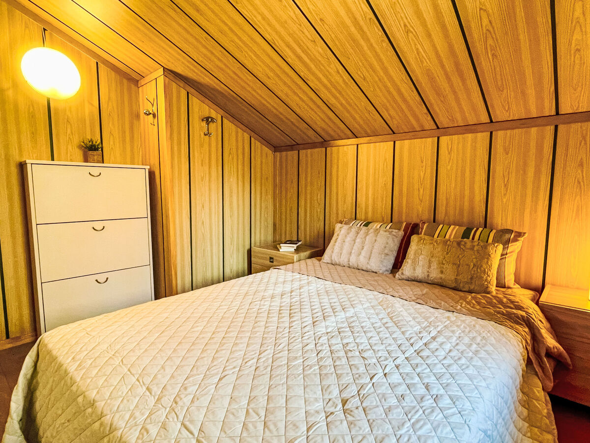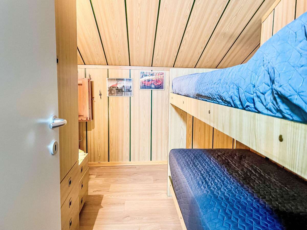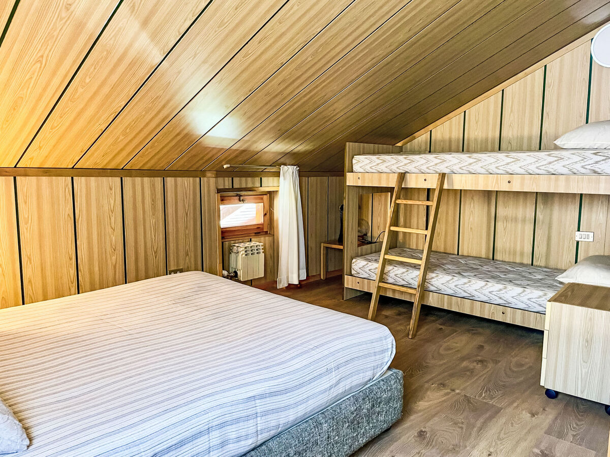 1 chambre avec 1 x 2 lits superposés, 1 lit double (140 cm, longueur 190 cm).