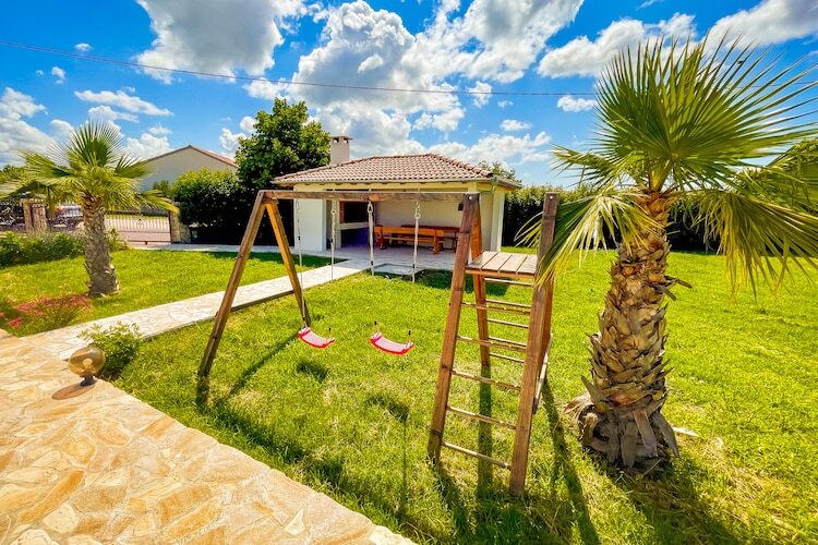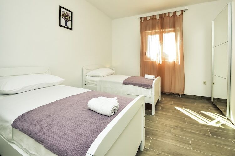 L'intérieur se compose d'un salon/salle à manger chaleureux avec cheminée, coin salon, table à manger et télévision à écran plat avec chaînes satellite. La cuisine américaine est entièrement équipée avec plaques électriques, four, micro-ondes, lave-vaisselle, réfrigérateur-congélateur et appareils électroménagers tels qu'une cafetière et une bouilloire. Le confort est assuré par la climatisation dans certaines chambres, des moustiquaires dans tout le logement et des ventilateurs. Tous les équipements essentiels sont fournis, notamment l'accès internet Wi-Fi, un lave-linge, un fer à repasser, une chaise haute et un lit bébé (gratuit). Bien qu'entourée en pleine nature, la maison se trouve à seulement 12 km de Biograd na Moru (centre-ville, supermarché, restaurant, plage) et à 18 km du magnifique lac de Vrana.