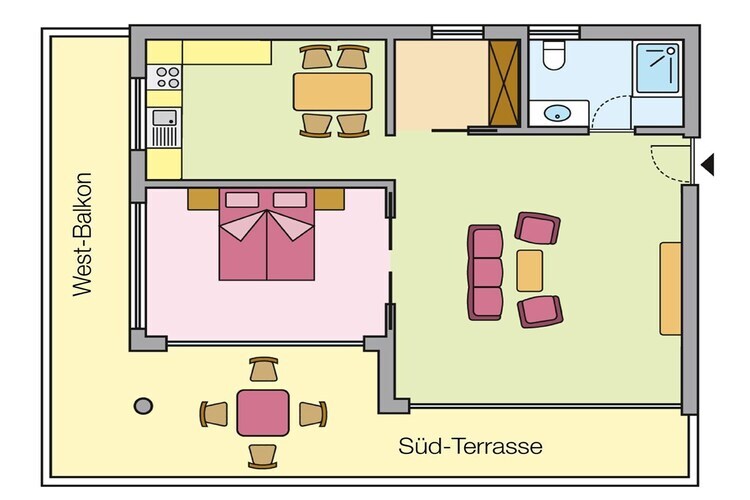Cet appartement de vacances comprend une grande chambre panoramique, un séjour avec télévision par satellite, une cuisine entièrement équipée et un balcon exposé plein sud. La salle de bains est pourvue d'une douche, de toilettes, d'un bidet, d'un sèche-cheveux et d'un miroir.