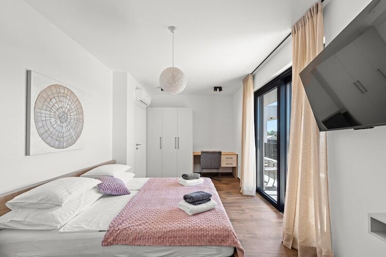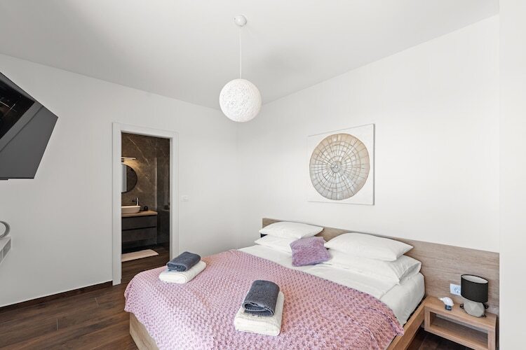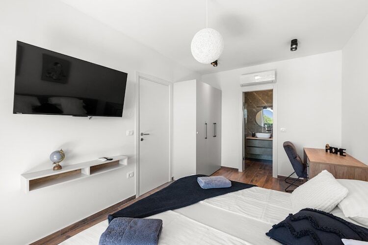 Le premier étage abrite les trois autres suites, offrant chacune une intimité totale. Il se compose de trois chambres doubles supplémentaires, chacune disposant de sa propre salle de bains privative équipée d'une douche, d'un lavabo et de WC, garantissant ainsi à chaque hôte son propre espace privé. L'ensemble de la villa est équipé de tout le confort moderne, comme l'accès Internet, la climatisation et un lave-linge. Le chauffage est également fourni, assurant un confort optimal en toute saison.