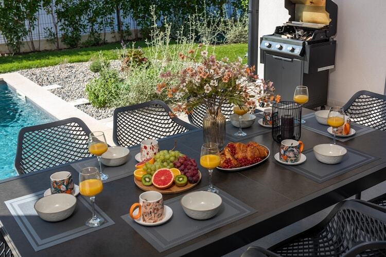 L'espace extérieur est un véritable atout, offrant une oasis de détente en toute intimité. Les hôtes peuvent profiter d'une piscine privée entourée d'une terrasse et d'un jardin aménagé avec chaises longues et mobilier de jardin. Un barbecue est à disposition pour les repas en plein air. La propriété comprend également un balcon ou une terrasse et un parking sur place. Située à seulement 1,5 km des restaurants et à 2 km de la plage, la villa offre un cadre paisible tout en restant proche des commodités et des attractions touristiques.