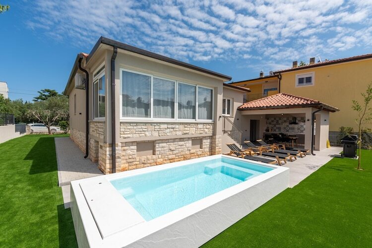 cuisine ouverte(cafetière/percolateur, four, lave-vaisselle , combinaison réfrigérateur/congélateur, , ), salle à manger-salon(TV(écran plat), table, coin salon), chambre(lit double), chambre(lit simple, lit simple), chambre(lit double), salle de bains(douche, lavabo, WC), salle de bains(douche, lavabo, WC), salle de bains(douche, lavabo, WC), cuisine d'été, Accès Internet, cafetière/percolateur, sauna, lave-linge , balcon ou terrasse, chauffage, climatisation, terrasse, jardin, mobilier de jardin, transats, barbecue, piscine(privé)