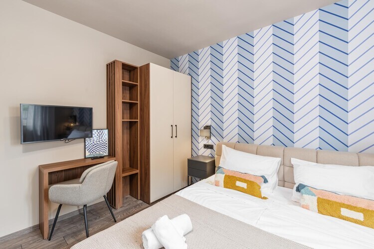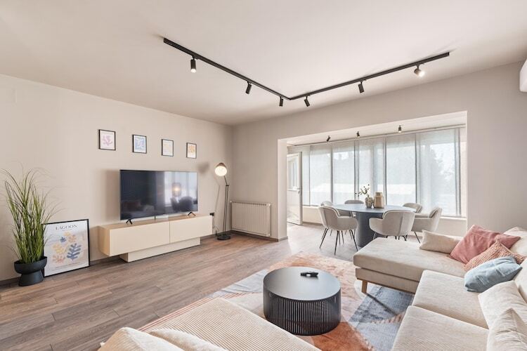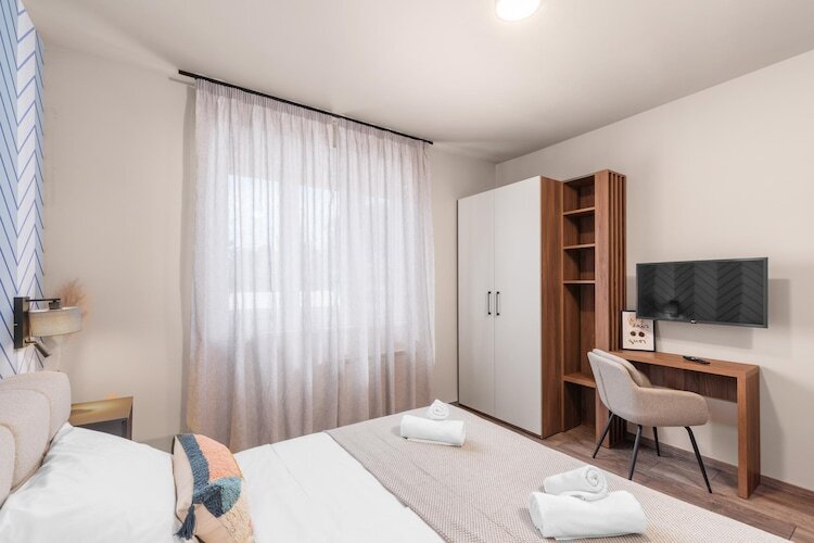 Cette magnifique maison de vacances indépendante offre un espace de vie généreux de 160 m², pouvant accueillir confortablement jusqu'à 6 adultes (et un bébé). L'intérieur, agencé avec soin, s'articule autour d'une grande cuisine ouverte entièrement équipée d'appareils modernes, dont un four, un lave-vaisselle et un réfrigérateur-congélateur, ainsi que d'une machine à café et de tous les ustensiles de cuisine nécessaires. Cet espace se prolonge harmonieusement vers le salon/salle à manger, qui comprend une télévision à écran plat, une table à manger et un coin salon confortable. La maison dispose de trois chambres spacieuses : deux avec un lit double et une troisième avec deux lits simples.