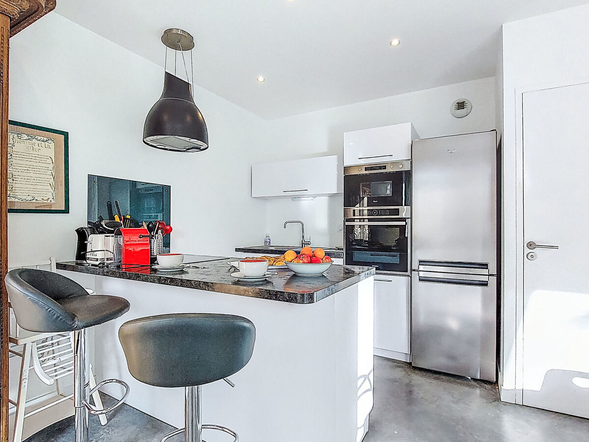 Coin cuisine (four, lave-vaisselle, 4 plaques à induction, grille-pain, bouilloire électrique, micro-ondes, congélateur, cafetière électrique, Capsules pour machine à café (Senseo) (NON INCLUSES)).