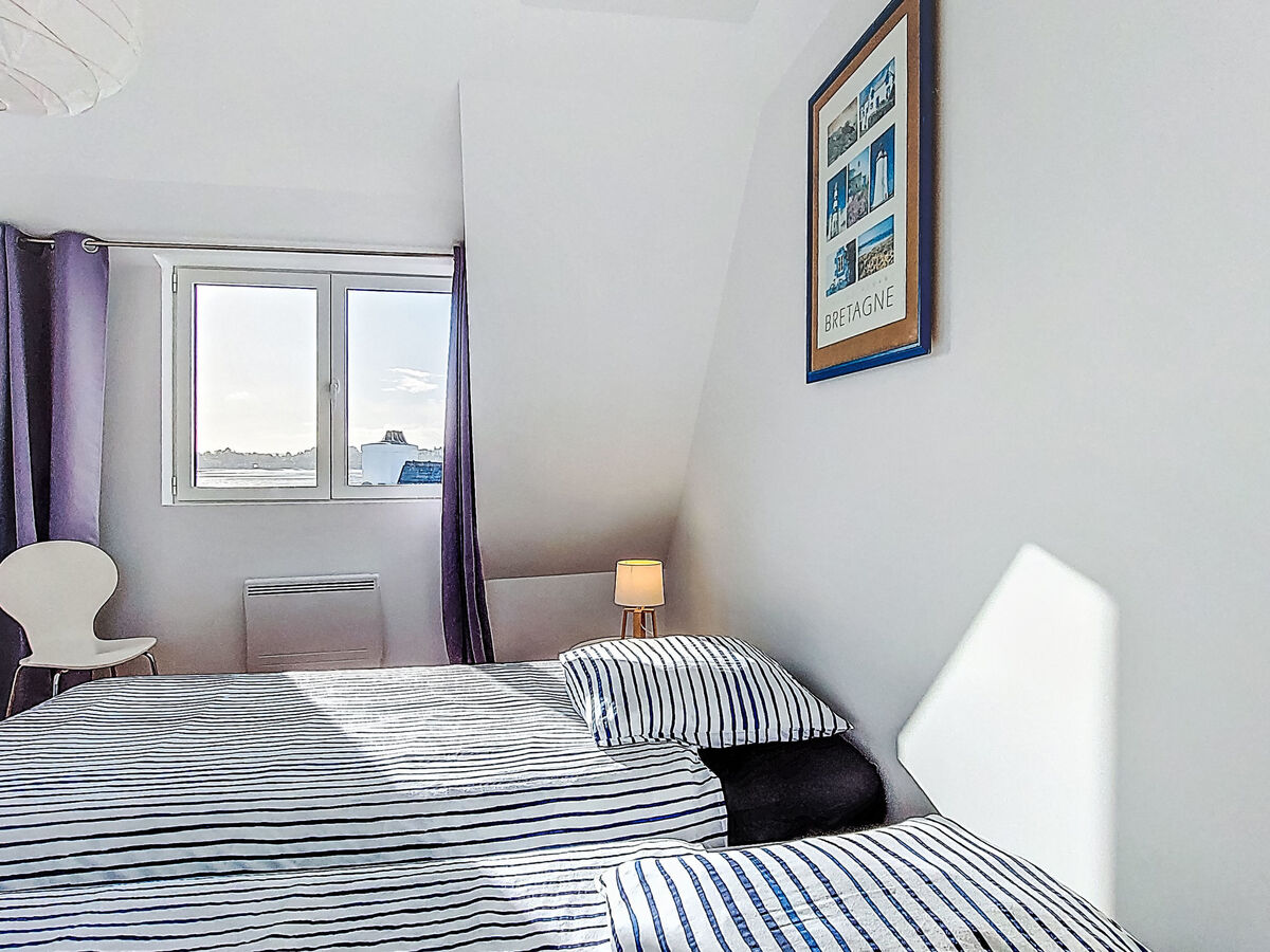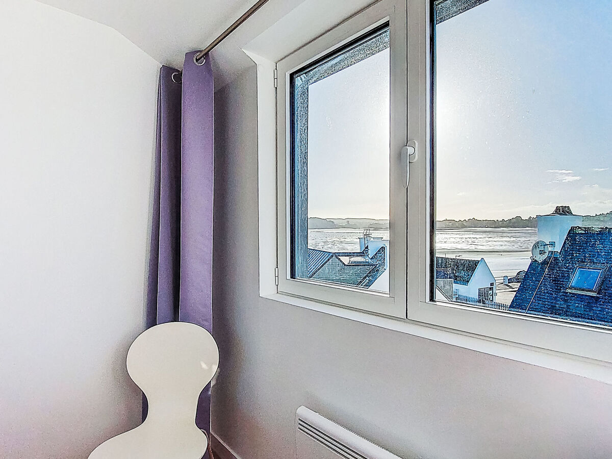 Au centre de Locquirec, dans la localité, à 5.5 km du centre de Plestin-les-Grèves, excellente situation: centrale mais tranquille, à 50 m de la mer, à 50 m de la plage, dans une impasse.
