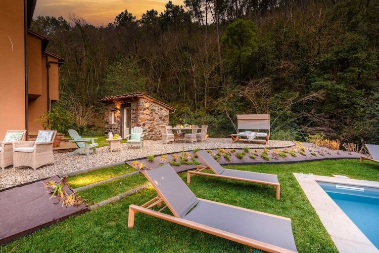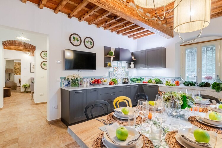 Autrefois un moulin en activité niché au bord d'un ruisseau paisible, cette ferme toscane magnifiquement restaurée offre aujourd'hui un havre de paix au cœur des collines vallonnées près de Lucques. Entourée d'oliveraies et de jardins parfumés, la maison allie charme rustique et confort moderne. Les murs en pierre traditionnels et les carreaux de terre cuite préservent son héritage, tandis que les intérieurs reflètent chaleur, élégance et un lien profond avec l'histoire familiale.