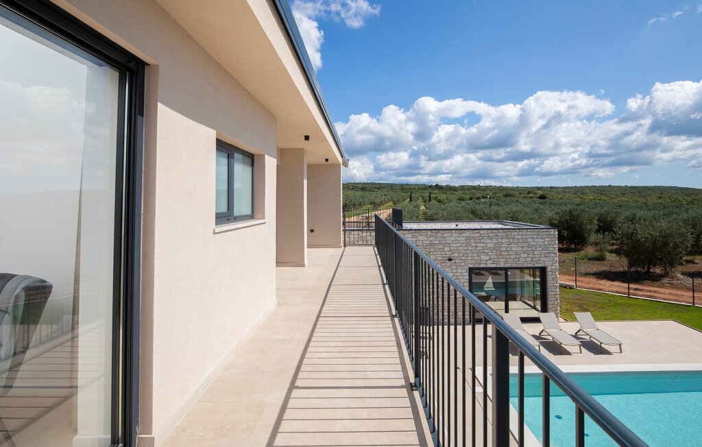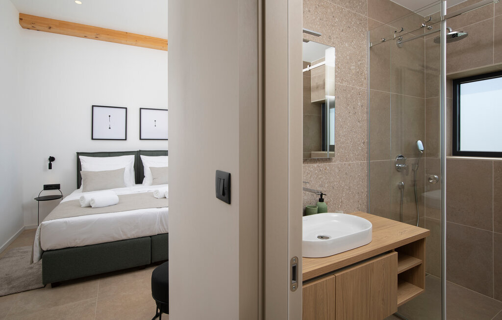Passez également des heures ensoleillées au bord de la grande piscine privée, faites quelques brasses ou détendez-vous sur les nombreuses chaises longues. Profitez des terrasses couvertes pour prendre vos repas en plein air ou passer des après-midi tranquilles à l'ombre en contemplant le paysage environnant. Profitez des douces soirées sur le toit-terrasse et observez le coucher du soleil dans une ambiance détendue.