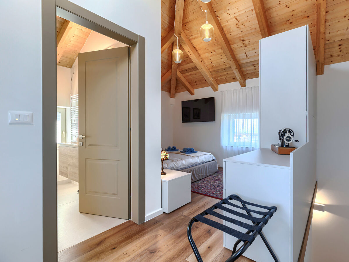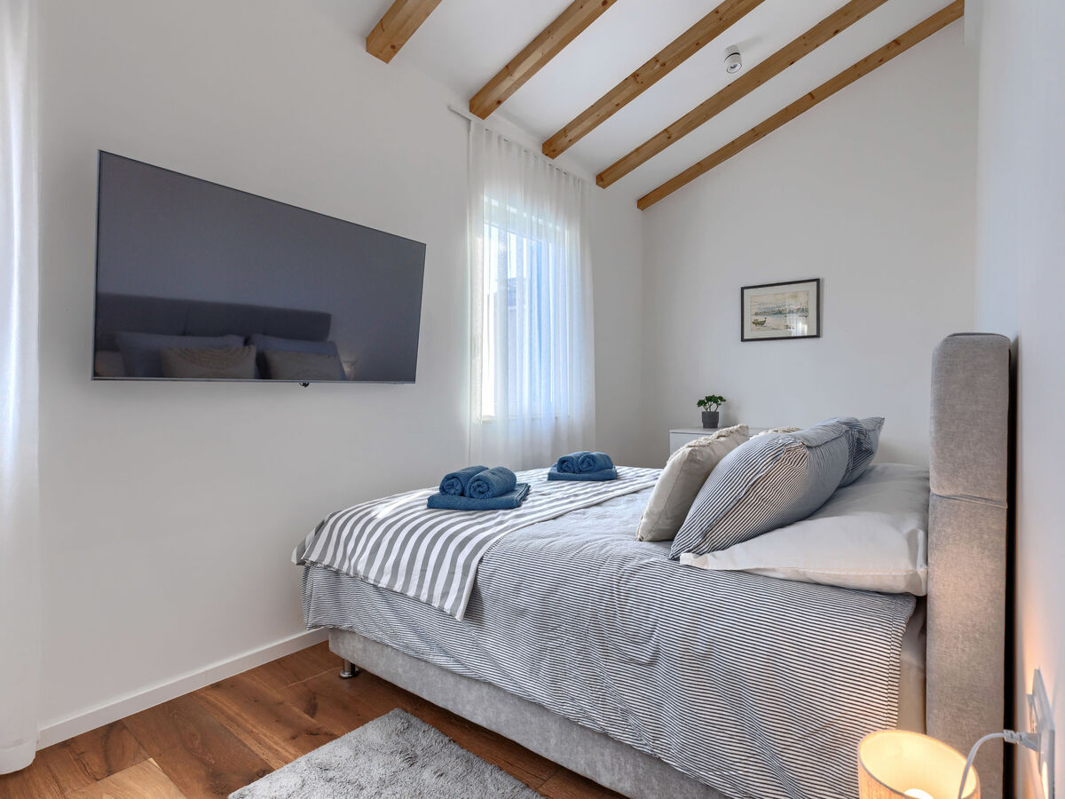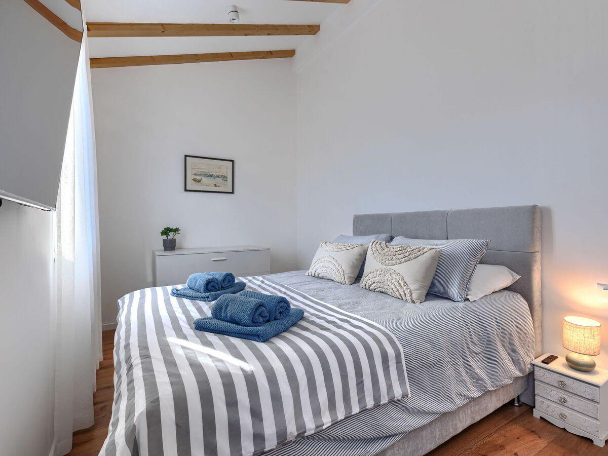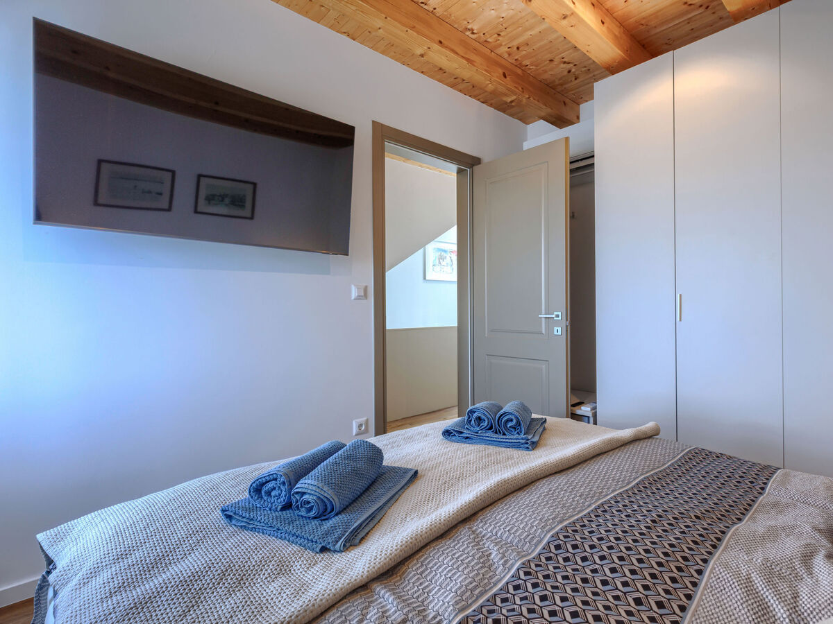 À l'étage supérieur: 1 chambre avec 1 grand-lit (160 cm, longueur 200 cm), TV (satellite) (écran plat), air-conditionné.