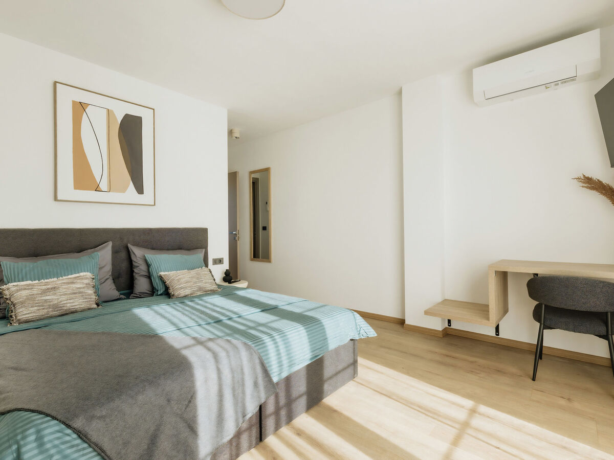 Aménagement moderne et de bon goût: séjour/salle à manger avec TV (satellite) et air-conditionné.