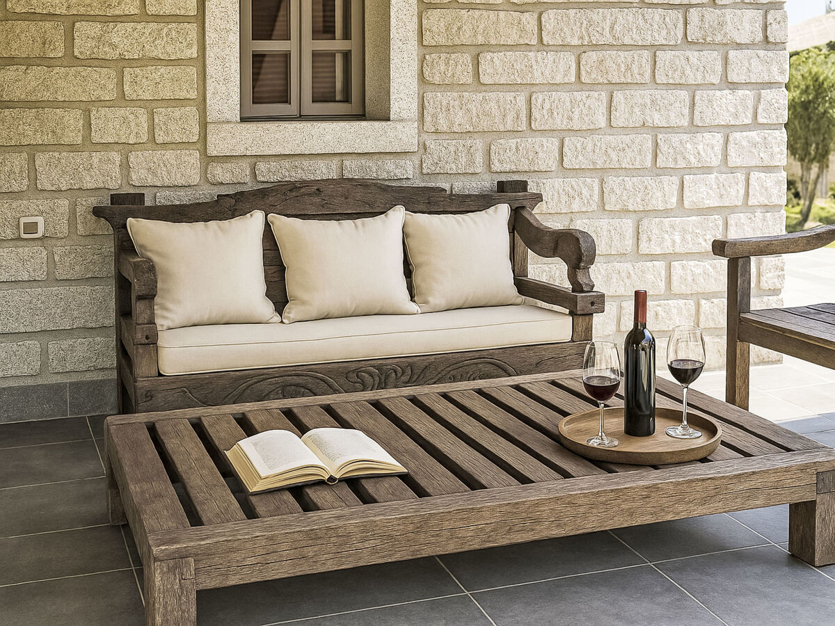 Meubles de terrasse, barbecue, place pour s'asseoir.