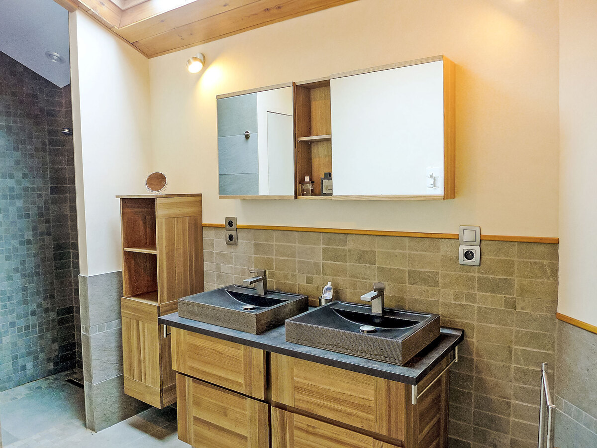 Cette maison de vacances individuelle est aussi constituée d’une terrasse de 50 m2 avec des meubles et d’un barbecue. La machine à laver fait partie des équipements mis à disposition des hôtes.