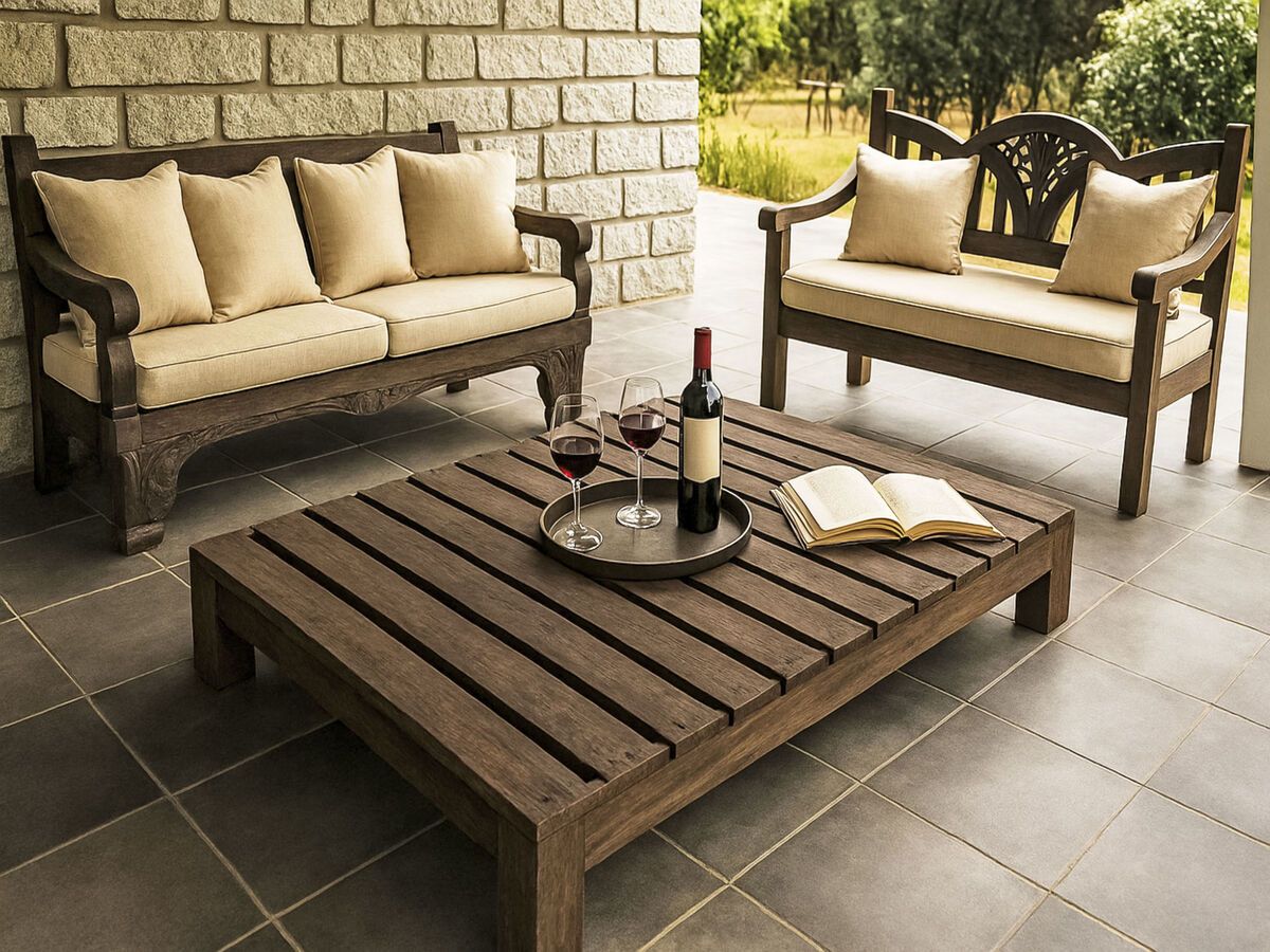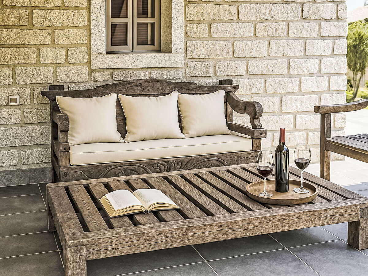 Meubles de terrasse, chaises longues, place pour s'asseoir.