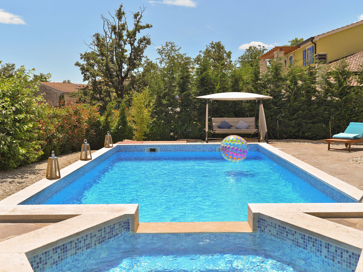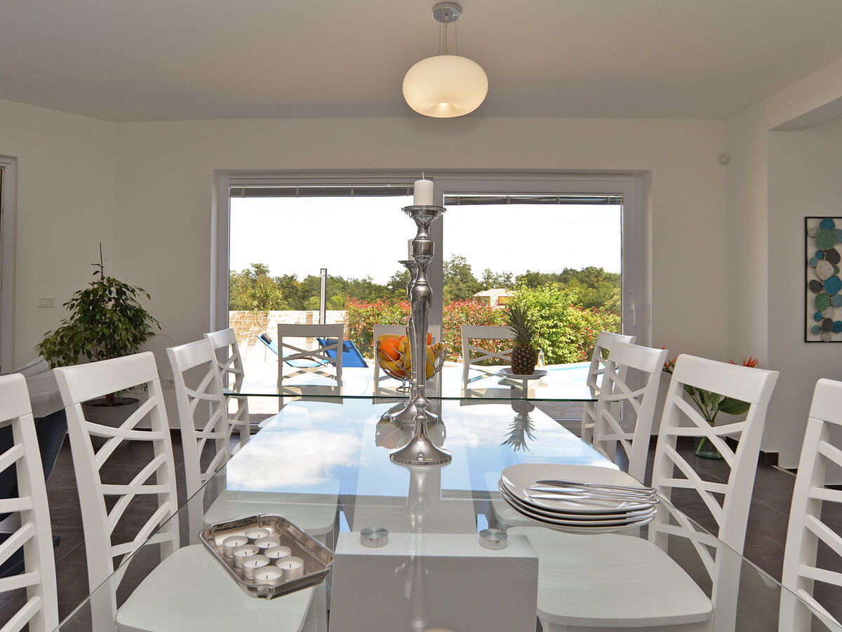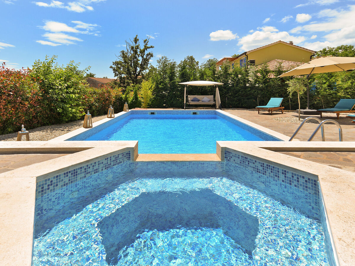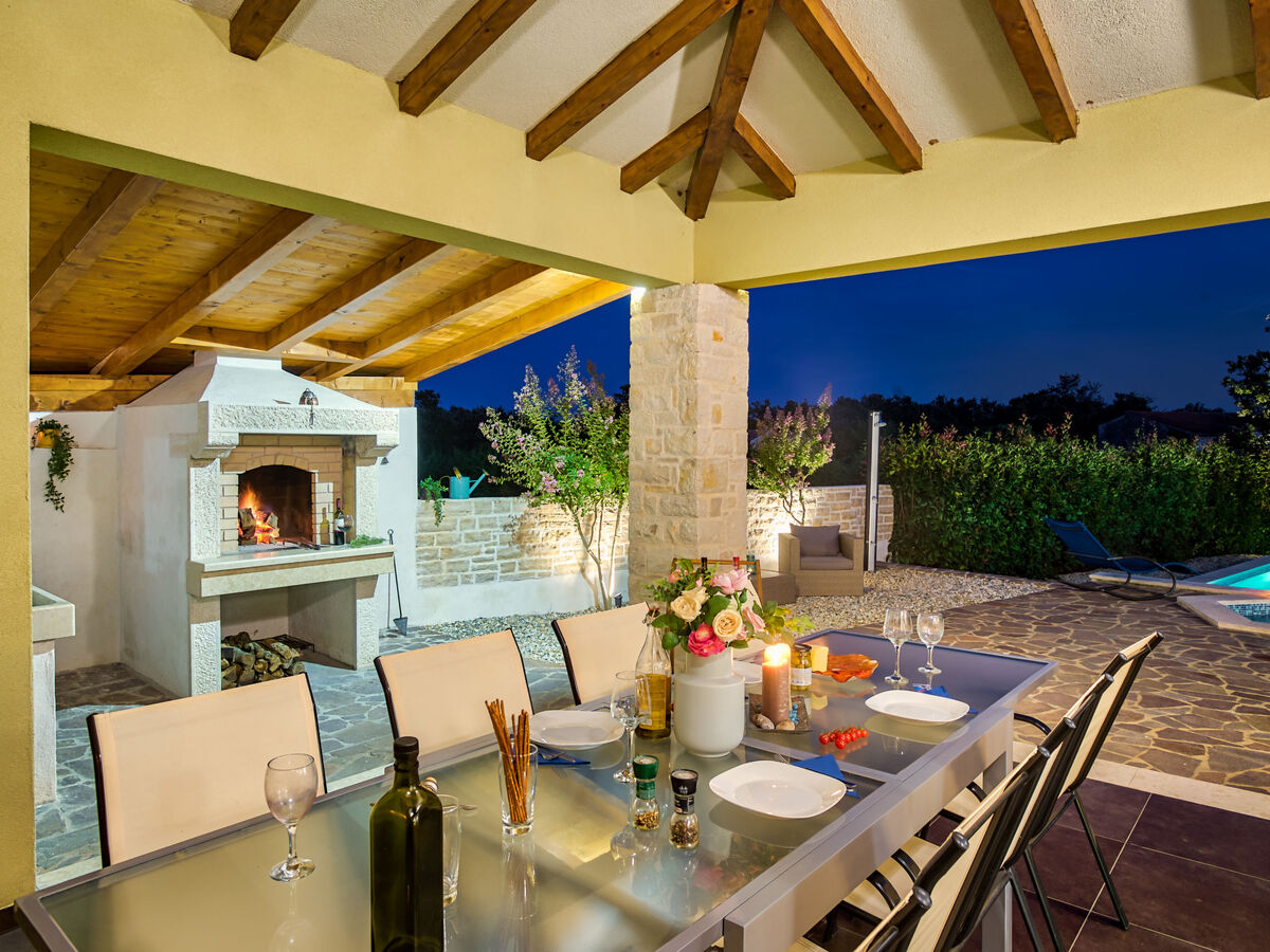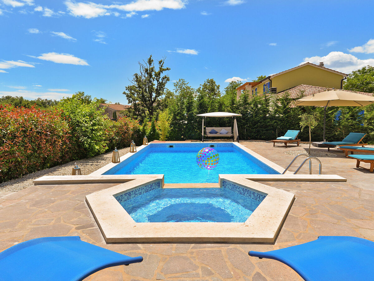 Villa 1519 is situated in Žminj (Region Istria).Villa 1519 is located 3000m from the center and 25000m from the beach.Villa 1519 has 1 accommodation unit. Basic information - Pets allowed: none - Floor on which the object can be found: Ground floor - size of property: 280 m² - non-smoking - Number of bedrooms: 6 - Number of bathrooms: 5 Top features - air conditioning: Everywhere - heating: Everywhere - balcony - terrace - ㄴ for sole use - Total of private car parking spaces: 1 Cooking/Living - coffee machine: coffee machine - fridge/freezer: freezing compartment, fridge - stove: stove - oven - toaster - microwave - electric kettle - dishwasher Entertainment - TV: TV Utility - washing machine: For sole use in the object - iron - safe Outside area - outdoor furniture - grill/barbecue: grill/barbecue - outside shower Surroundings - Nearest town centre: 3,0 km - restaurant: 3,0 km - beach: 25,0 km - sea: 25,0 km