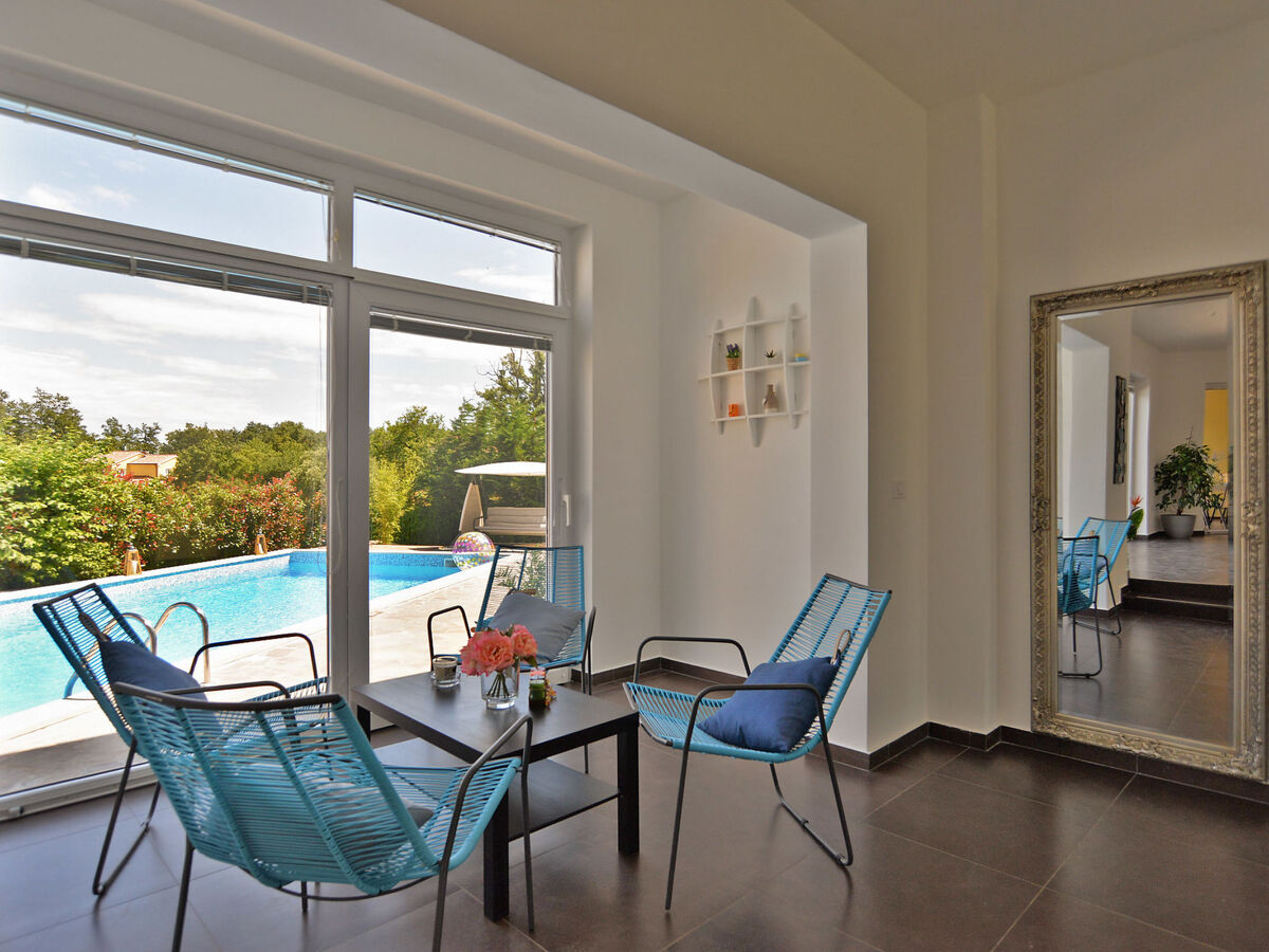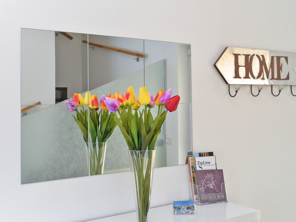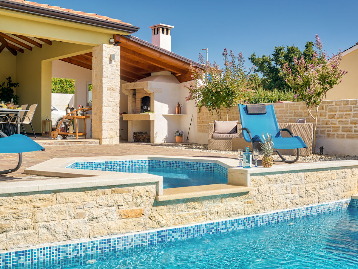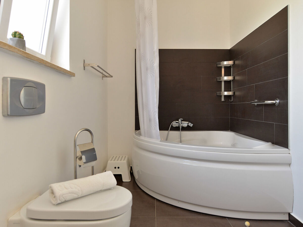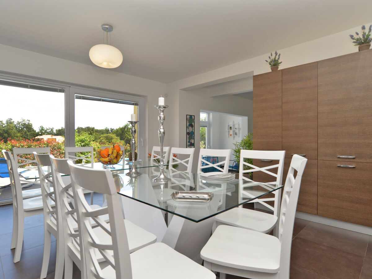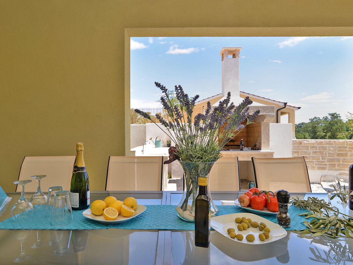 Villa 1519 is situated in Žminj (Region Istria).Villa 1519 is located 3000m from the center and 25000m from the beach.Villa 1519 has 1 accommodation unit. Basic information - Pets allowed: none - Floor on which the object can be found: Ground floor - size of property: 280 m² - non-smoking - Number of bedrooms: 6 - Number of bathrooms: 5 Top features - air conditioning: Everywhere - heating: Everywhere - balcony - terrace - ㄴ for sole use - Total of private car parking spaces: 1 Cooking/Living - coffee machine: coffee machine - fridge/freezer: freezing compartment, fridge - stove: stove - oven - toaster - microwave - electric kettle - dishwasher Entertainment - TV: TV Utility - washing machine: For sole use in the object - iron - safe Outside area - outdoor furniture - grill/barbecue: grill/barbecue - outside shower Surroundings - Nearest town centre: 3,0 km - restaurant: 3,0 km - beach: 25,0 km - sea: 25,0 km