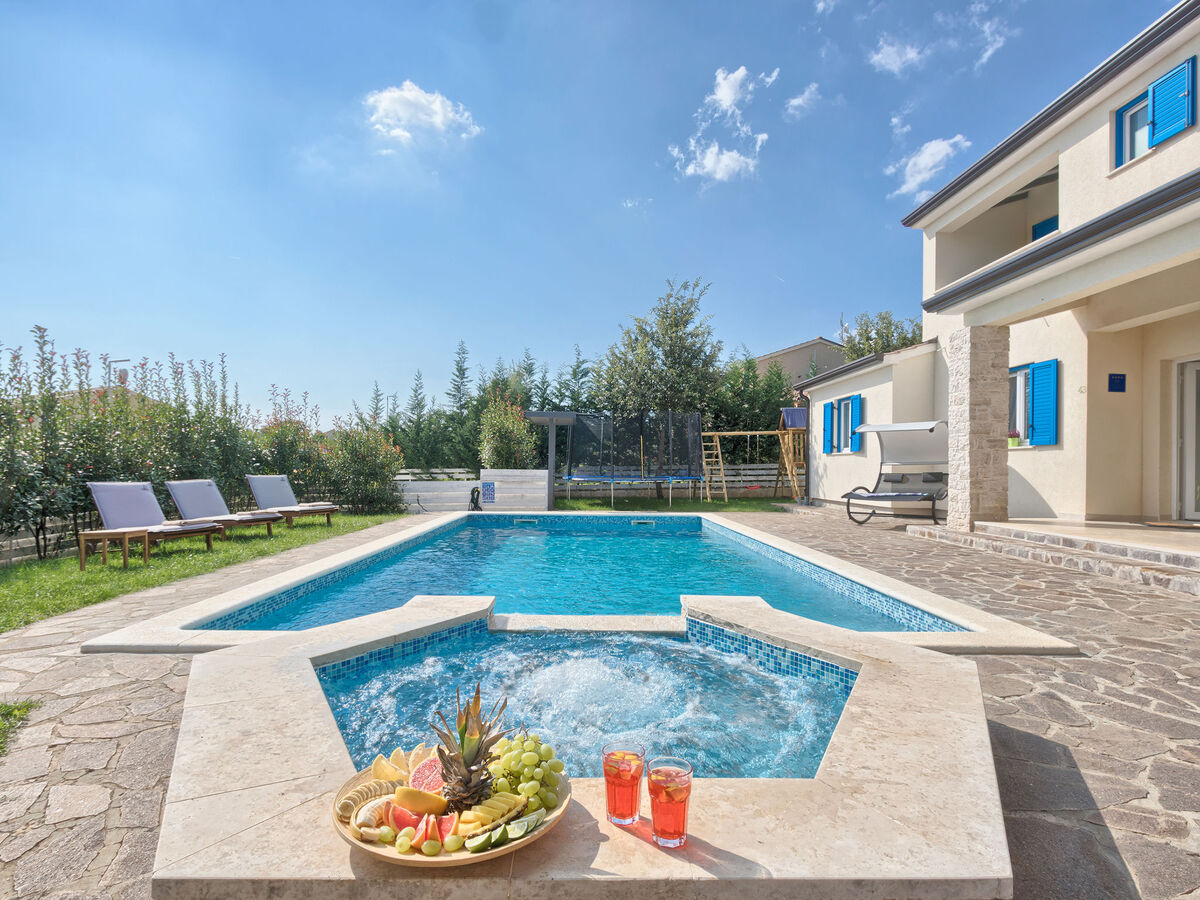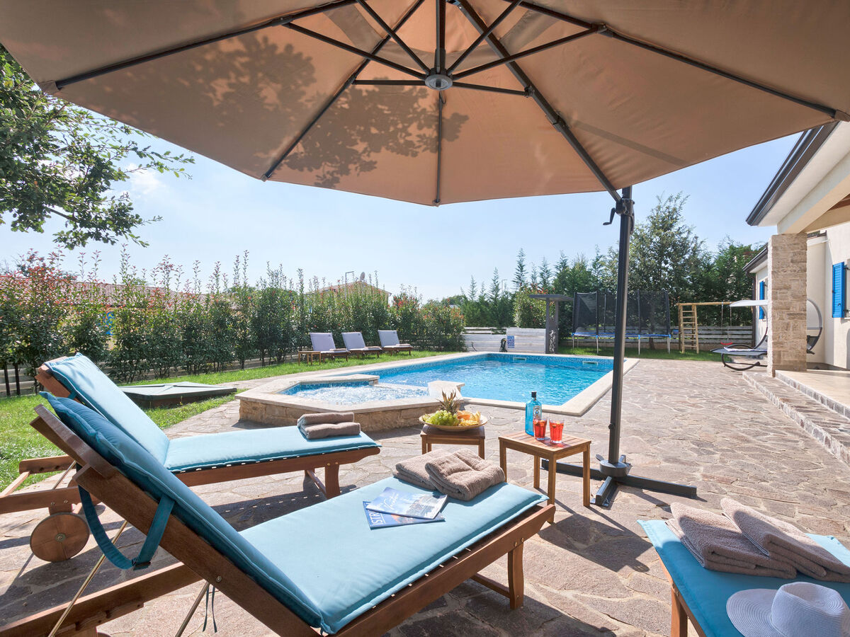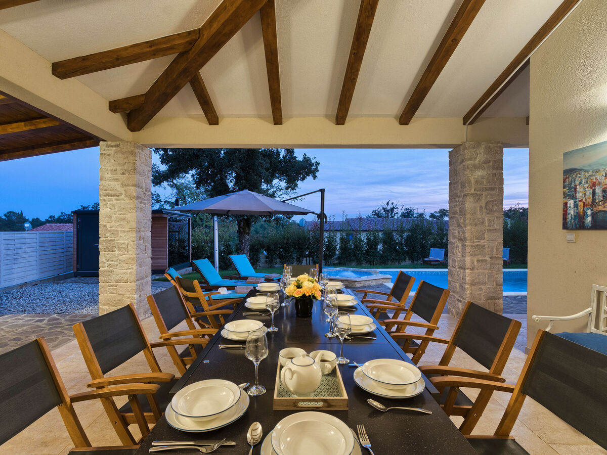 Villa 1521 is situated in Žminj (Region Istria).Villa 1521 is located 3000m from the center and 25000m from the beach.Villa 1521 has 1 accommodation unit. Basic information - Pets allowed: none - Floor on which the object can be found: Ground floor - size of property: 250 m² - non-smoking - Number of bedrooms: 5 - Number of bathrooms: 5 Top features - air conditioning: Everywhere - heating: Everywhere - balcony - terrace - ㄴ for sole use - Total of private car parking spaces: 1 Cooking/Living - coffee machine: coffee machine - fridge/freezer: freezing compartment, fridge - stove: stove - oven - toaster - microwave - electric kettle - dishwasher Entertainment - TV: TV Utility - washing machine: For sole use in the object - iron - safe Outside area - outdoor furniture - grill/barbecue: grill/barbecue - outside shower Surroundings - Nearest town centre: 3,0 km - restaurant: 3,0 km - beach: 25,0 km - sea: 25,0 km