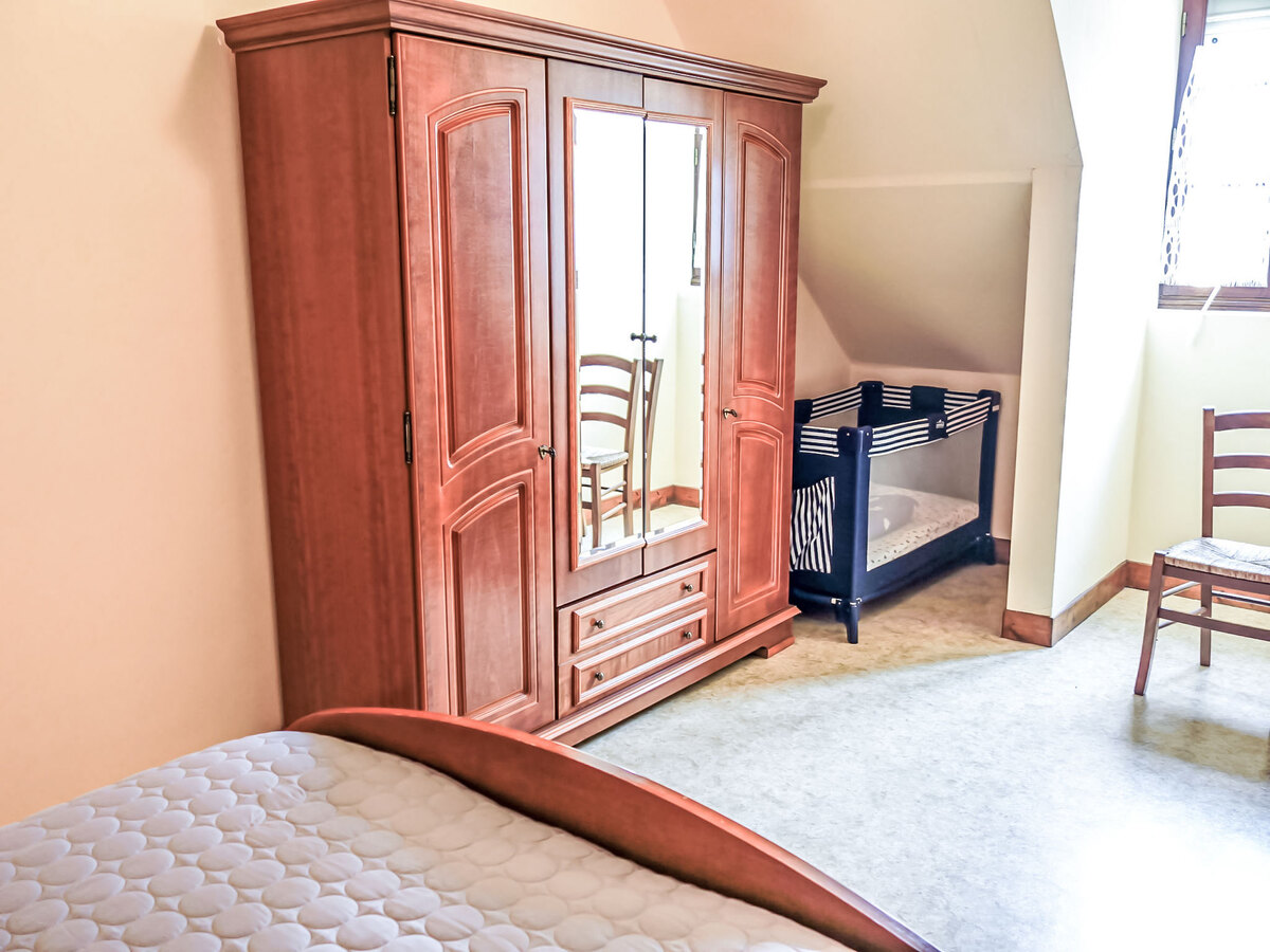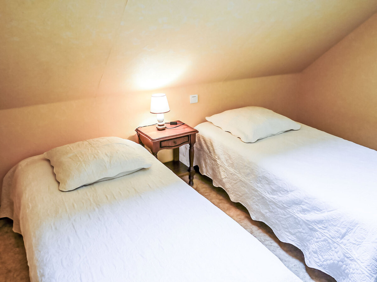 À l'étage supérieur: 1 chambre, mansardée avec 2 lits (90 cm, longueur 190 cm).