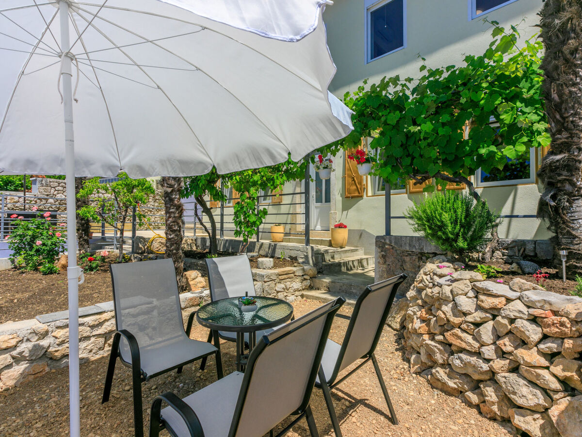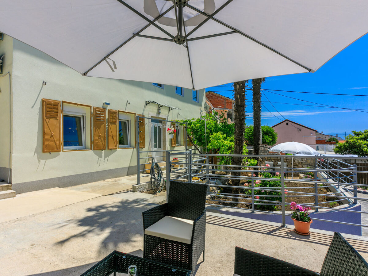 A parasol serves as protection from the sun.There are 2 cozy parking spaces in the courtyard of the house available free of charge.FurnishingLiving areaseparate living room, dining room and kitchen are in one room, sofa bed for one person, terrace with sea view, tiles, DVD player, satellite TV kitchenDishes, kitchen towels, electric stove, hotplates: 4, oven, fridge with freezer compartment, kettle, toaster, Dolce Gusto coffee maker, micro wave, dish washer bedroomDouble room with double bed, cot, sea view, parquetRoom with bunk bed, 1 extra bed, sea view, parquetbathroomBathroom with toilet, showerBalcony & terraceown terrace with bestuhukg and parasol, terrace size: 45 m² additional InformationBarbecue, you can bring your own barbecue, parking on the property, pets allowed, bed linen available, towels available, washing machine in the apartment, internet via W-LAN, charcoal grill - wood and coal are available