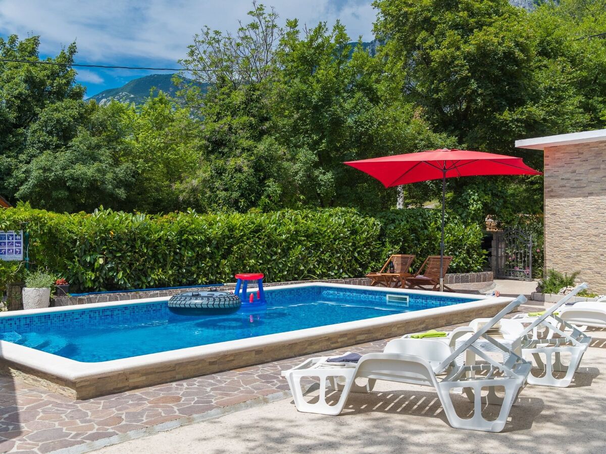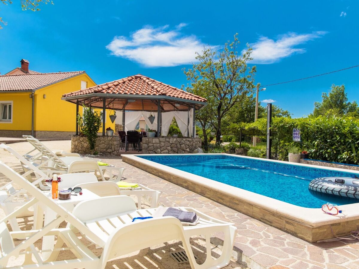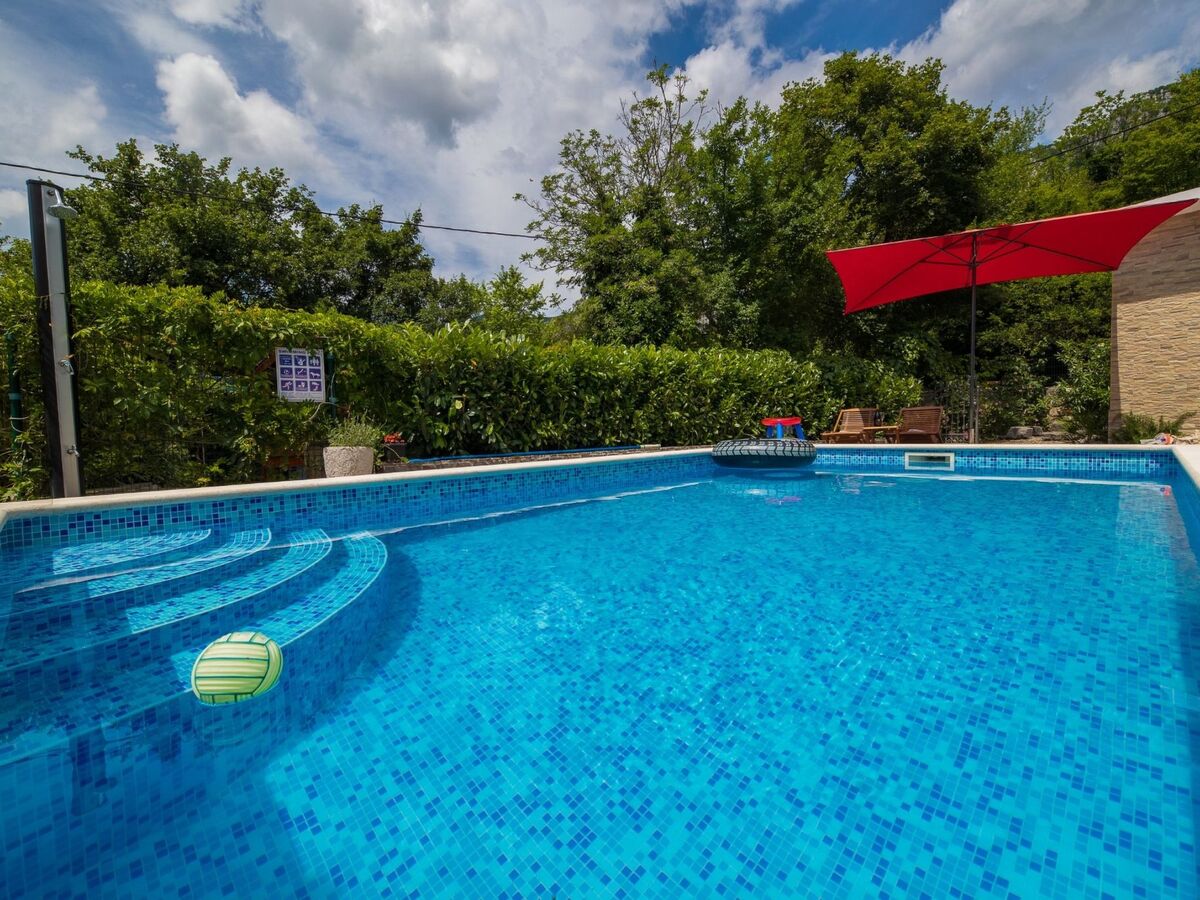 This holiday home with swimming pool for 4-6 people surrounded by greenery is located in the beautiful hinterland of Crikvenica.The closest town is the famous seaside resort Crikvenica in the Kvarner Bay, which can be reached in just a few minutes by car.The fully fenced 250 m² property and the comfortable 75 m² house with is ideal for families.DETAILED DESCRIPTION:Outdoor area:To make hot summer days as pleasant as possible, guests have access to a 22 m² covered terrace with seating for 8 people, and a 25 m² swimming pool is located in front of the terrace.