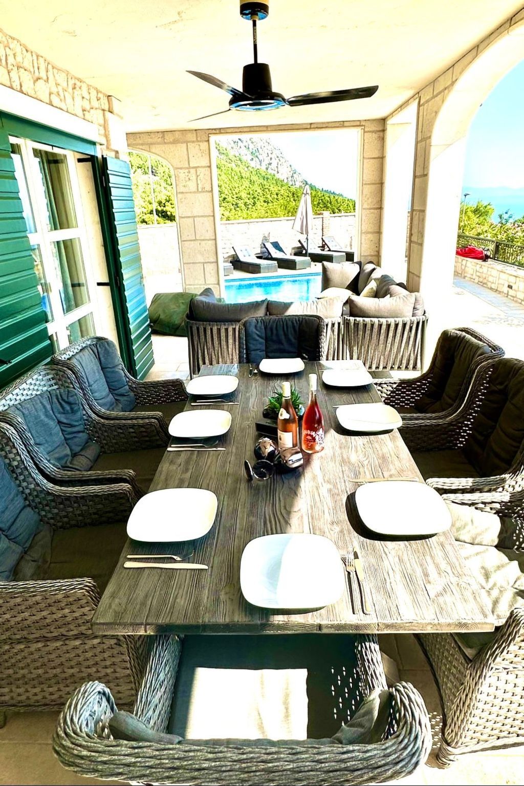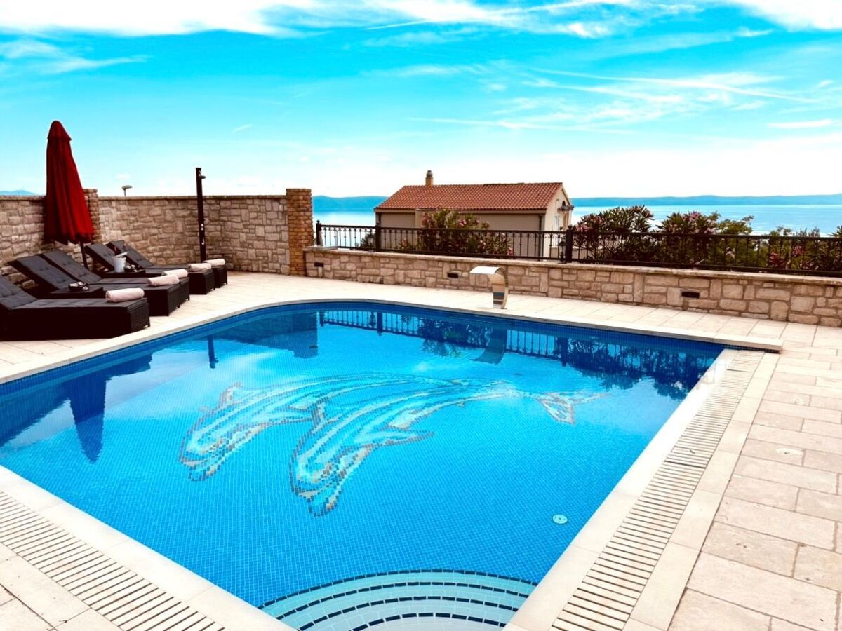 The fabulous villa is right behind the old town of Makarska on a hill.