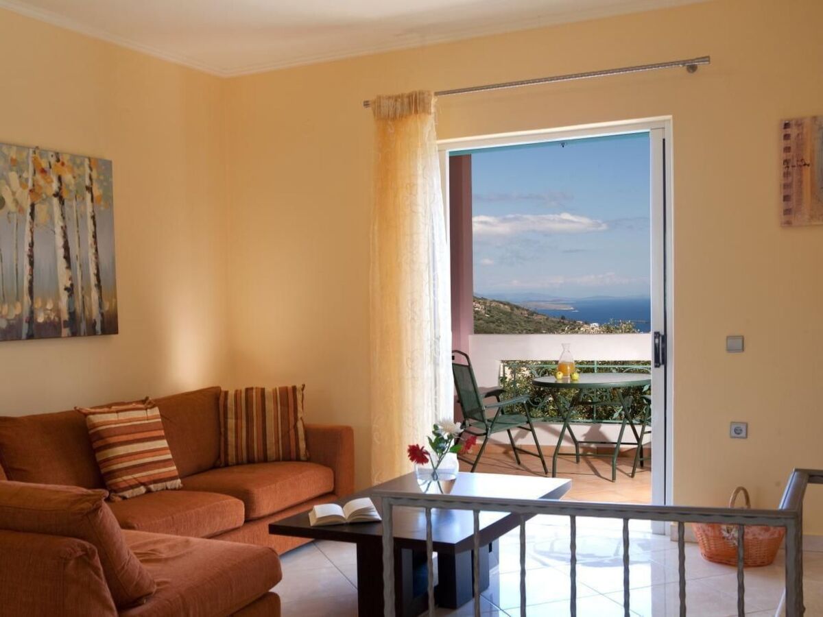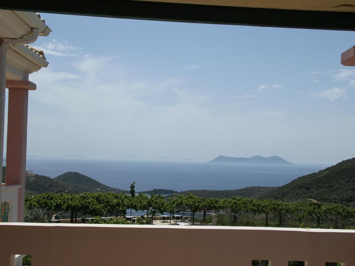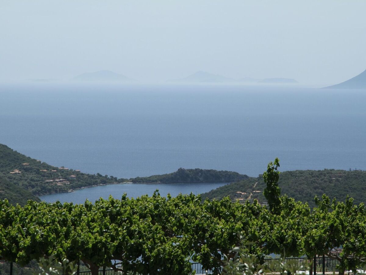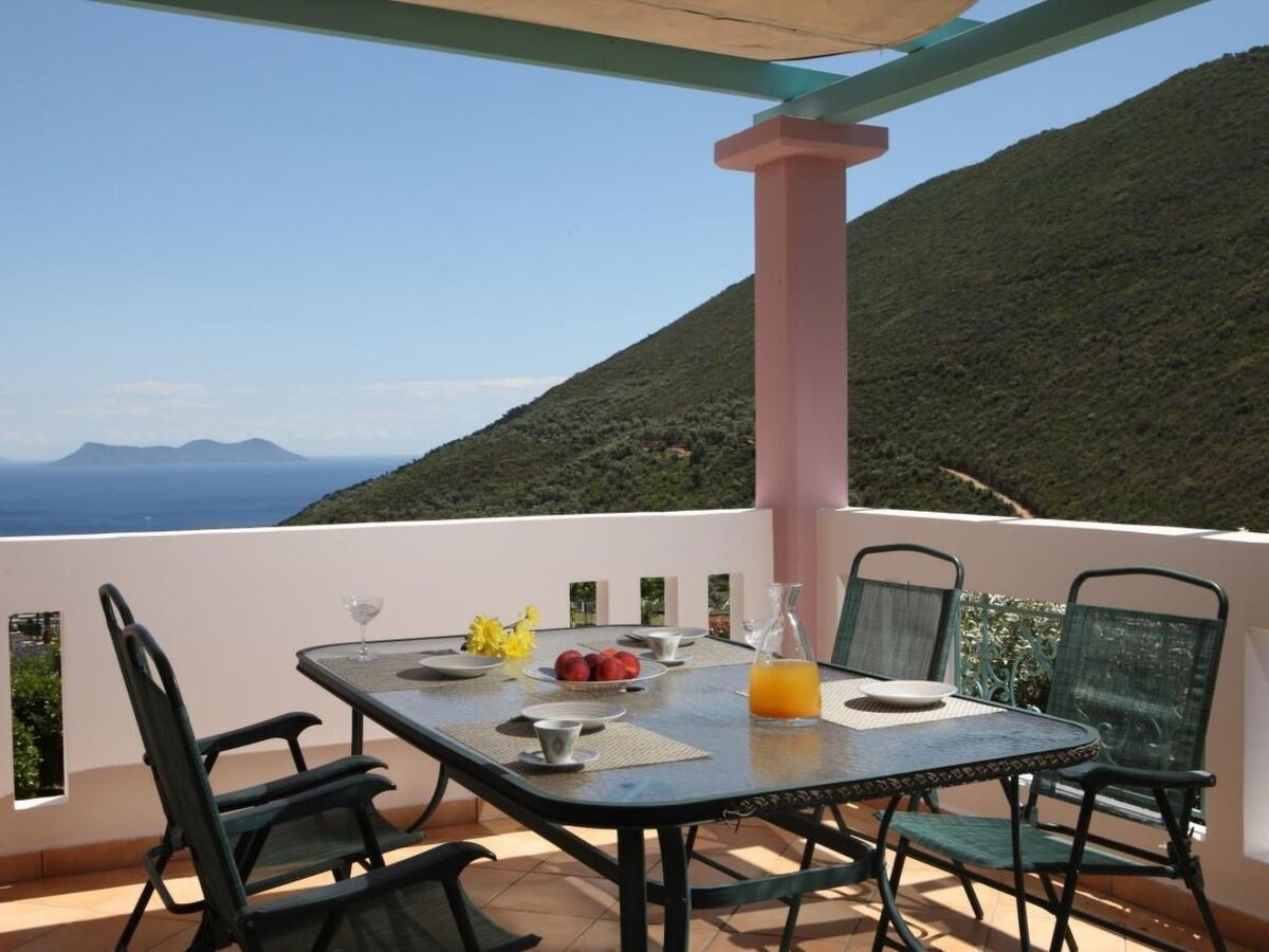 The covered verandas not only offer plenty of space to relax, but also provide an unobstructed view of the surrounding landscape and the bay of Sivota.
