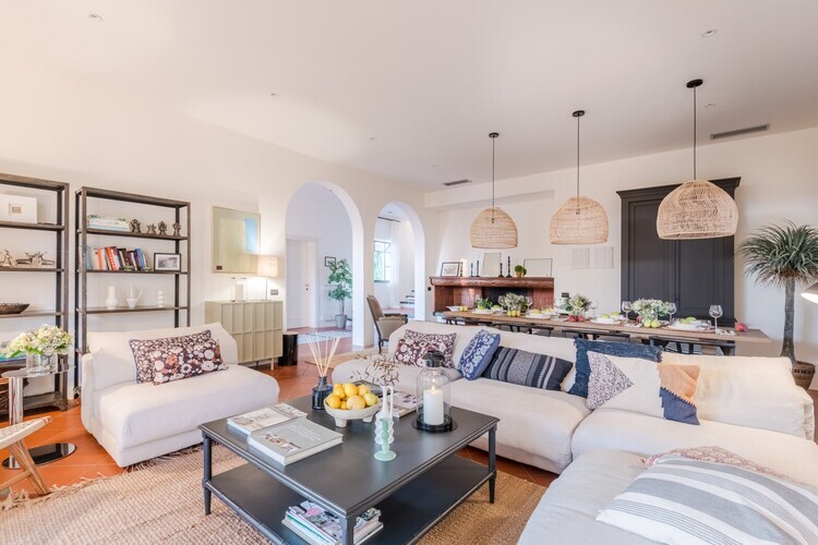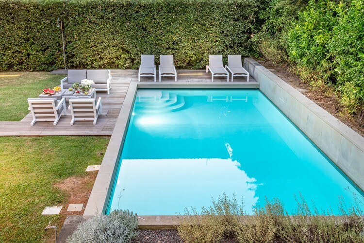cuisine(poêle(gaz), bouilloire, grille-pain, cafetière/percolateur, four, micro ondes, lave-vaisselle , réfrigérateur, congélateur, Presse-agrumes, ), salle à manger-salon(TV(satellite), table(8 personnes), cheminée, coin salon), chambre(lit simple, lit simple), chambre(lit double), chambre(lit double), chambre avec salle de bains(lit double, douche), salle de bains(douche), salle de bains(douche), salle de bains(douche), Meubles de jardin, sèche-linge, lit bébé, lave-linge , climatisation, terrasse, jardin, transats, transats, transats, transats, parking, piscine(privé), tennis de table/ping-pong, chaise haute, fer à repasser, sèche-cheveux