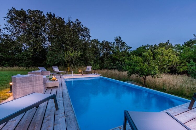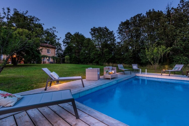 La maison de 300 m² dispose de quatre chambres spacieuses et de plusieurs espaces de vie, pouvant accueillir confortablement jusqu'à 8 personnes. Le rez-de-chaussée comprend une grande cuisine, une salle à manger, un salon chaleureux avec cheminée et une salle de bain. À l'étage, vous trouverez une suite parentale avec salle de bain attenante, deux chambres supplémentaires et deux autres salles de bain. Une quatrième chambre se trouve au dernier étage. L'espace extérieur est un atout majeur, avec une grande véranda pour les repas en plein air, un coin salon ombragé et une terrasse au bord de la piscine, idéale pour se détendre avec un verre de vin.