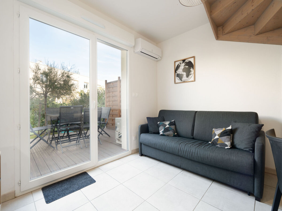 Séjour avec 1 divan-lit et 1 lit gigogne.