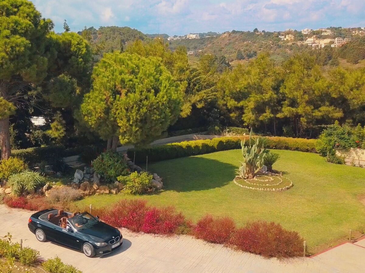 Lovely, spacious outdoors area: the estate is 4 sqm² and has a large garden, wide lawns, with trees and low herb shrubs, a terrace with two dining tables, balconies in all rooms with garden furniture, basketabll area and a private parking separate area.