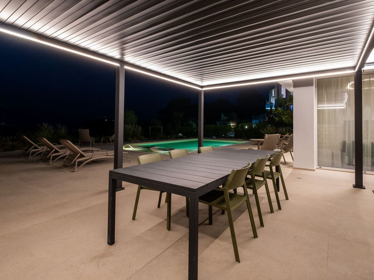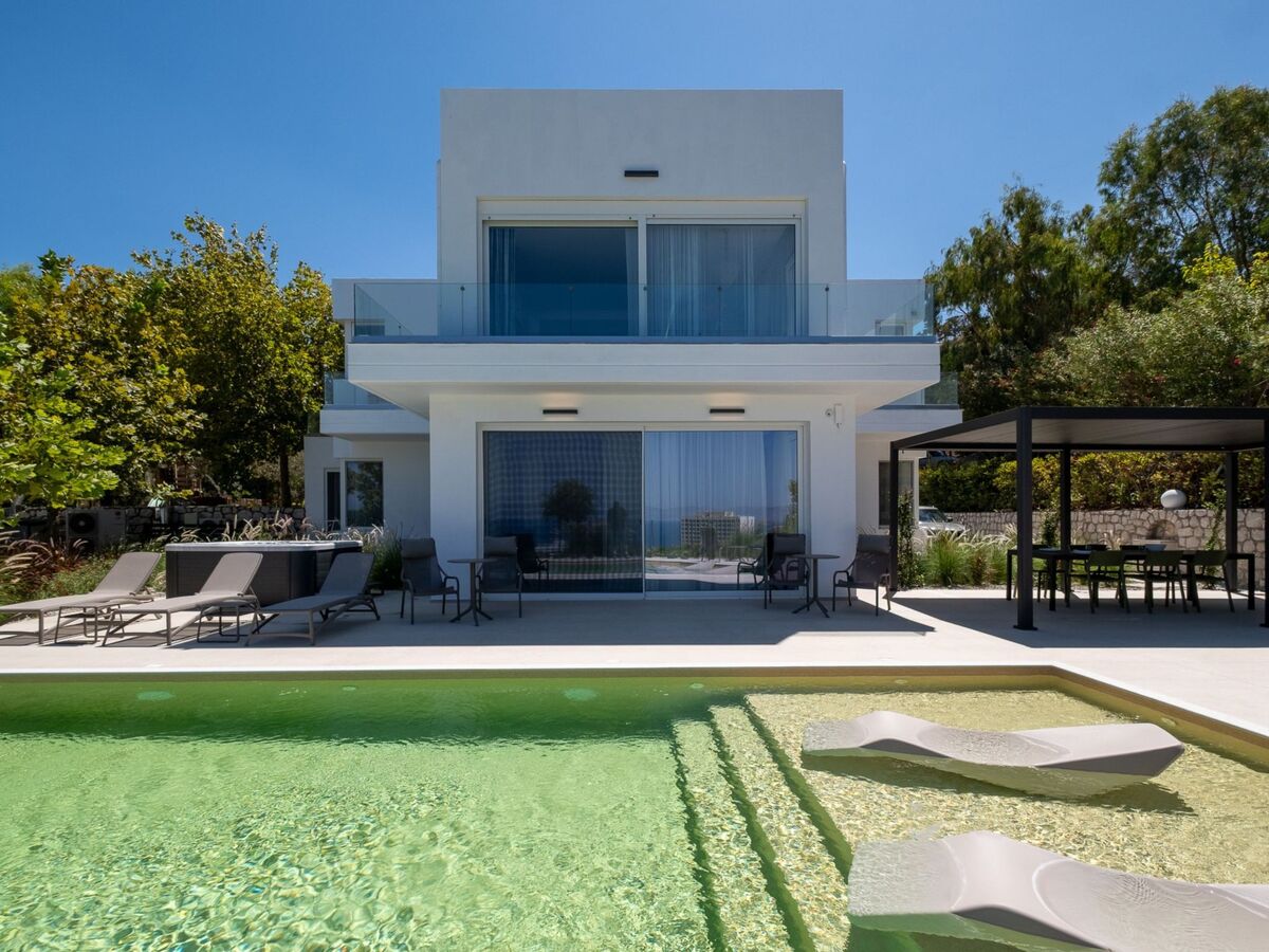 À l'extérieur, vous pourrez profiter de votre piscine privée, vous détendre dans le jacuzzi et admirer la magnifique vue sur la mer.