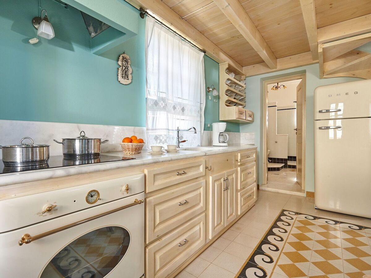 The stone villa has a fully equipped kitchen with all modern appliances (electric hob with oven, extractor fan, fridge with integrated freezer, filter coffee and espresso machine, toaster, kettle, electric fruit juicer), together with crockery, glassware and cookware.