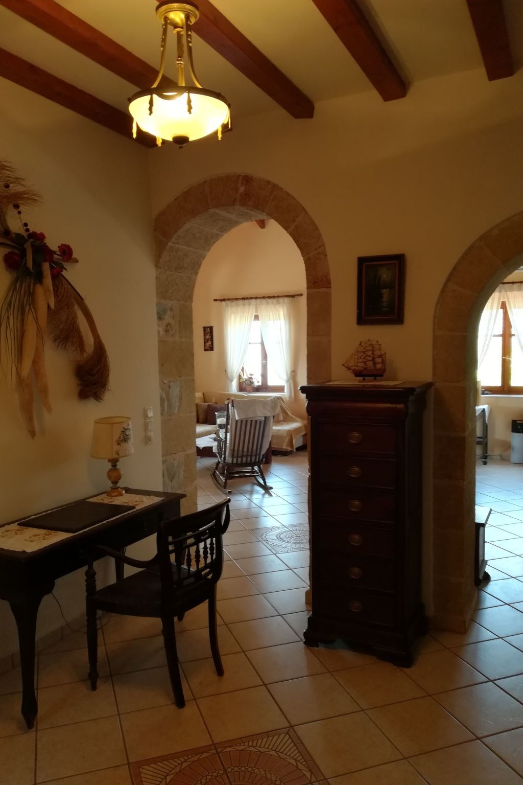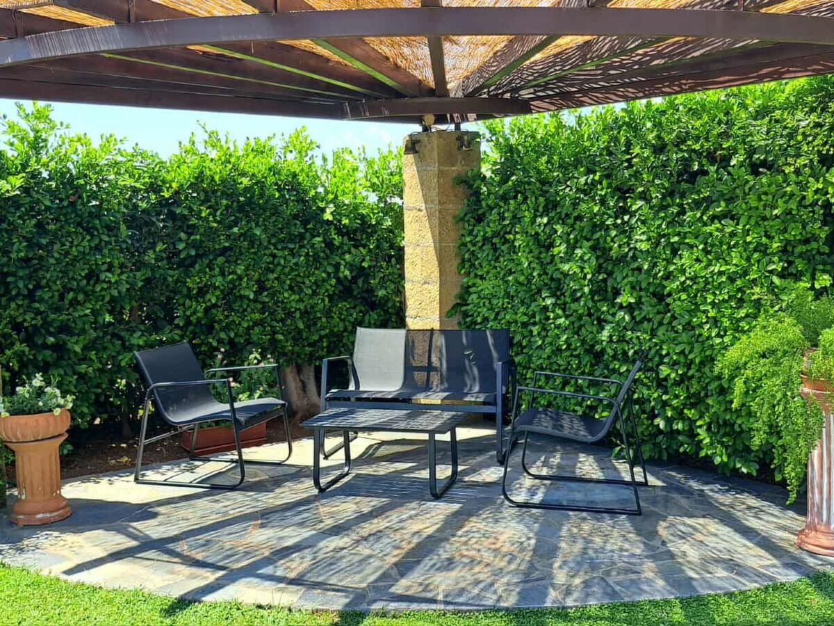 The spacious, covered terrace with its elegant sandstone arches provides the ideal setting to enjoy your breakfast with the landlord's homemade jams, and access to the secure pool area and the refreshing pool is easy from both sides of the villa.