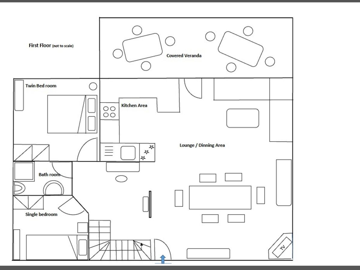 On the ground floor of the main building there are two bedrooms (one with two single beds that can be joined together and the other with a single bed), a bathroom with shower and a very large, cosily furnished living room.