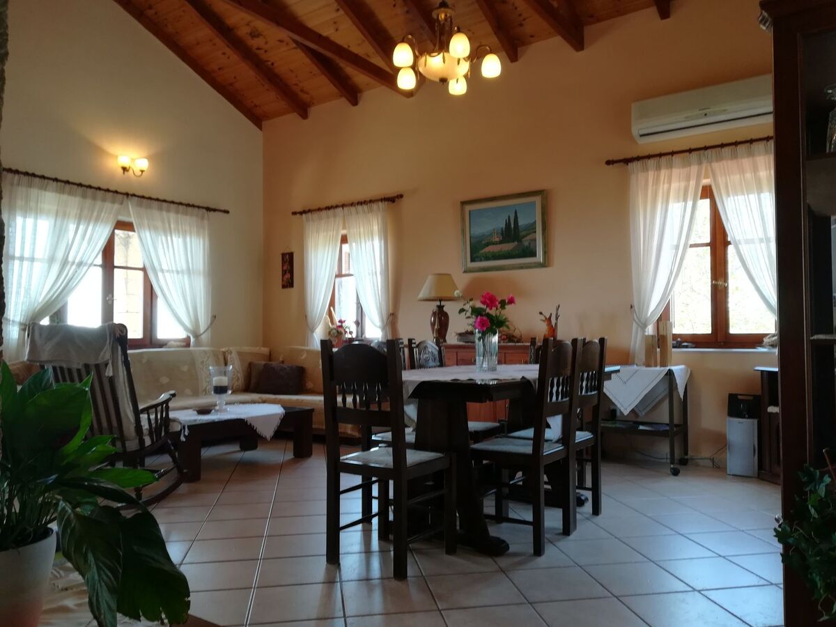 From here you have direct access to the large covered terrace with a breathtaking panoramic view over the Gulf of Messinia.