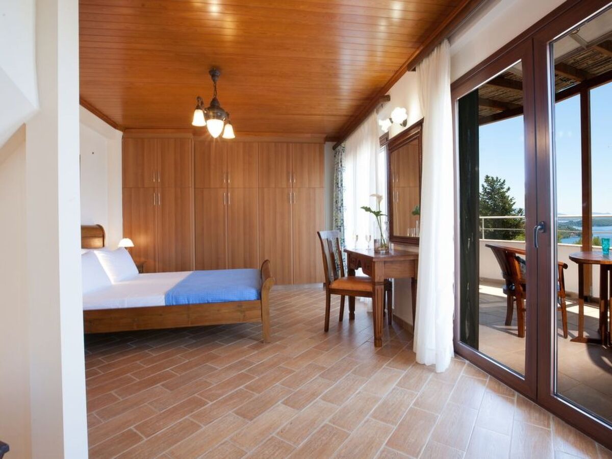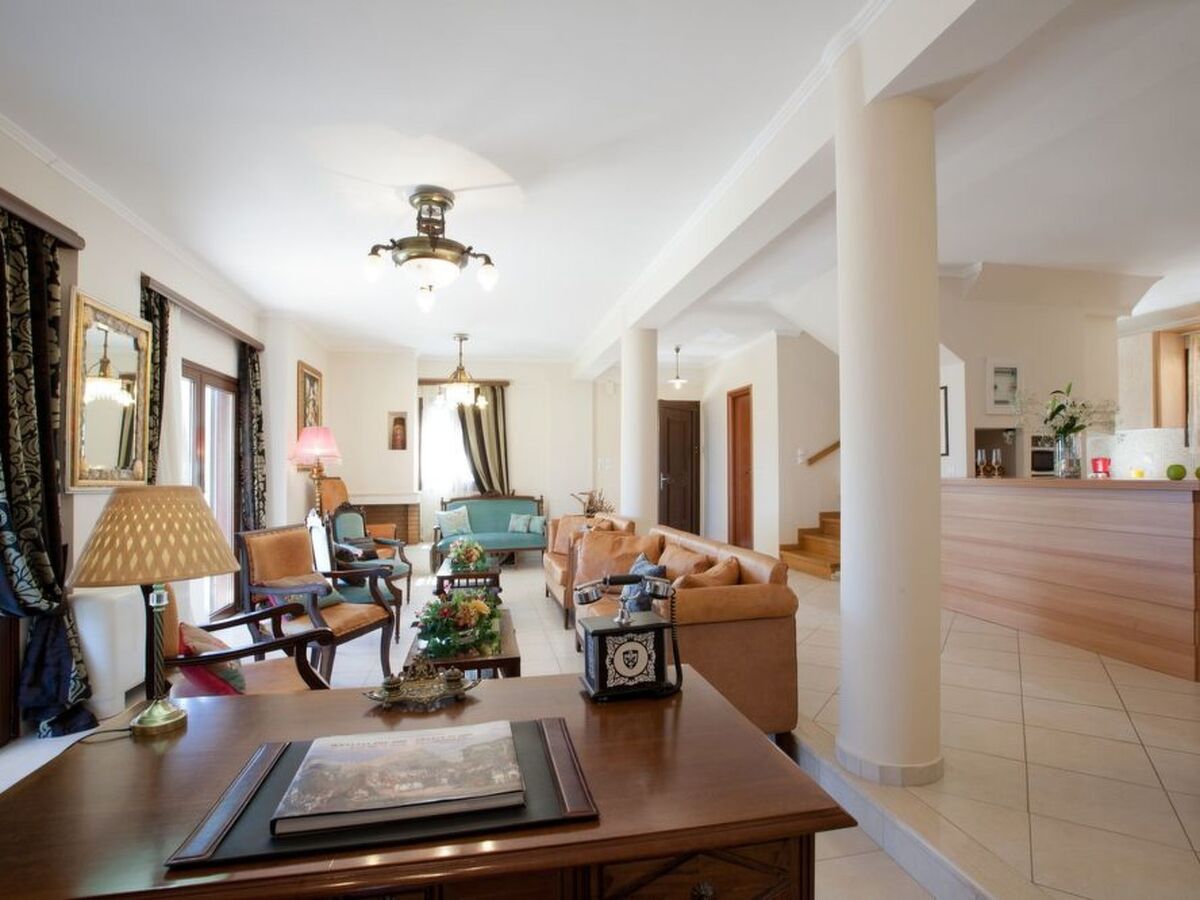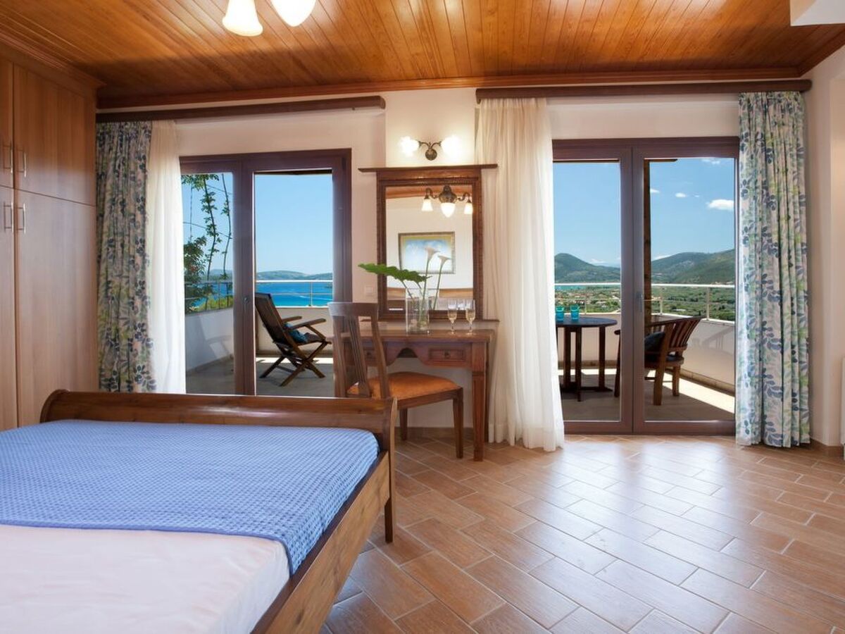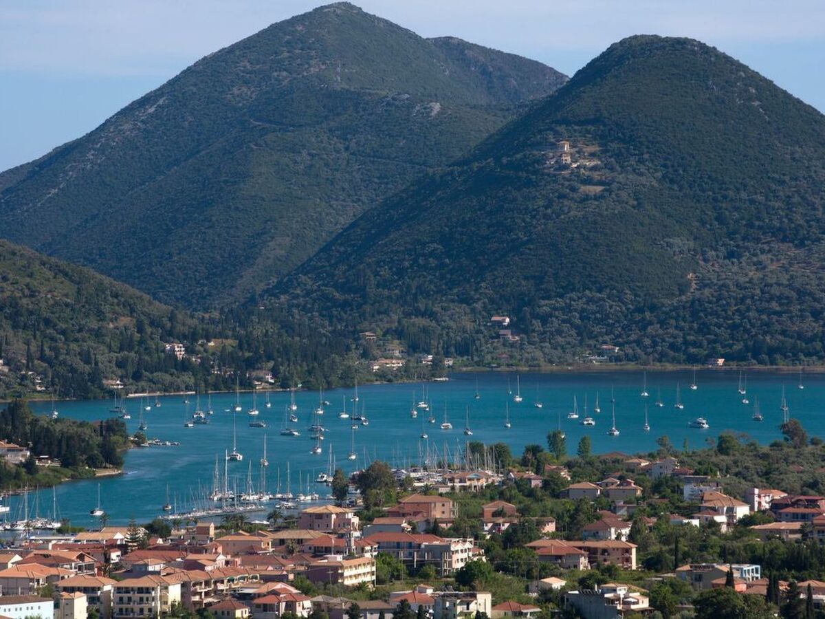 Perched gracefully on a hillside, this prestigious villa boasts sweeping panoramic views of Nidri village, Scorpios island once owned by the renowned shipping magnate Onassis, Meganisi island, Princess islands, and the vast Ionian Sea.