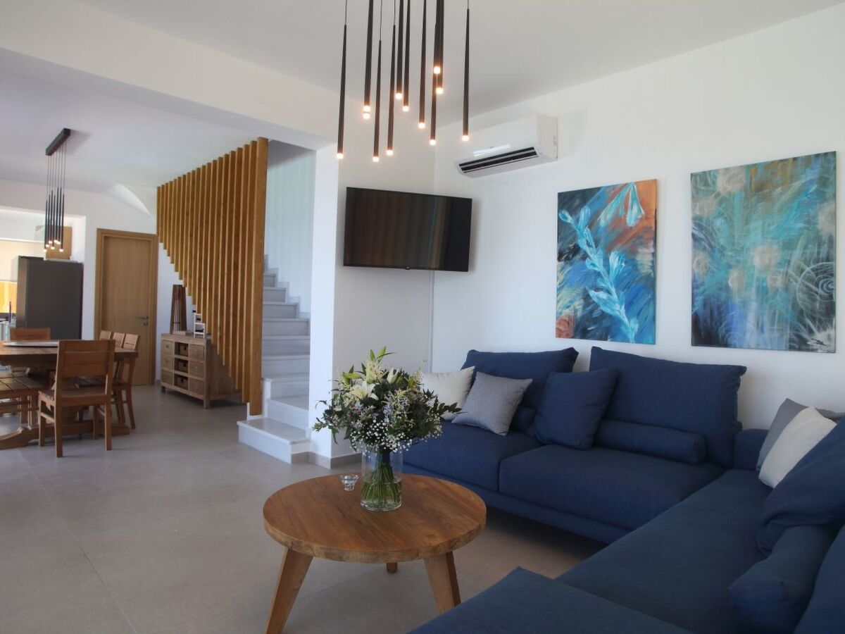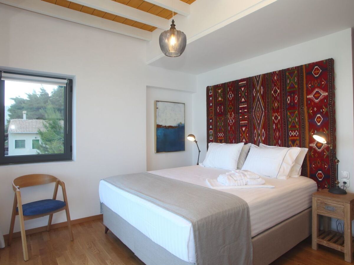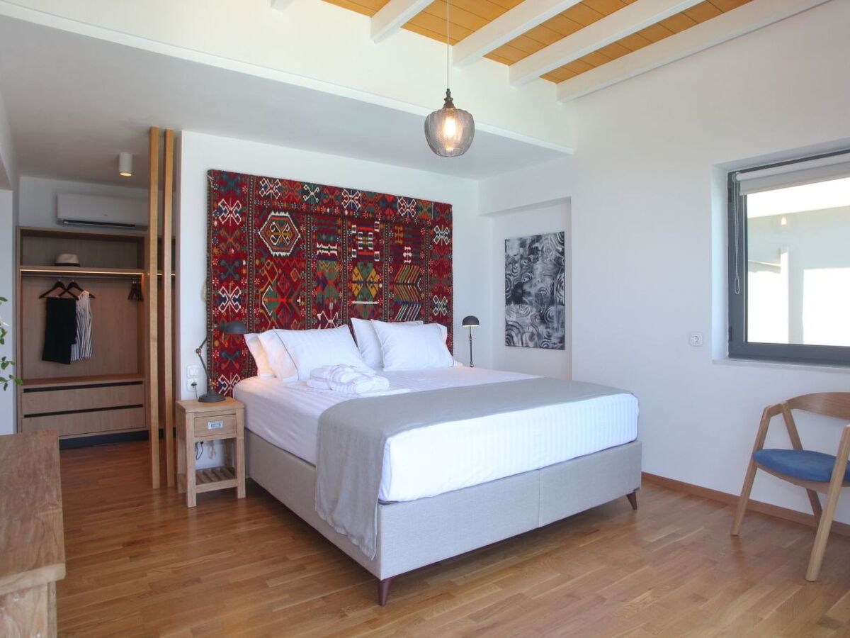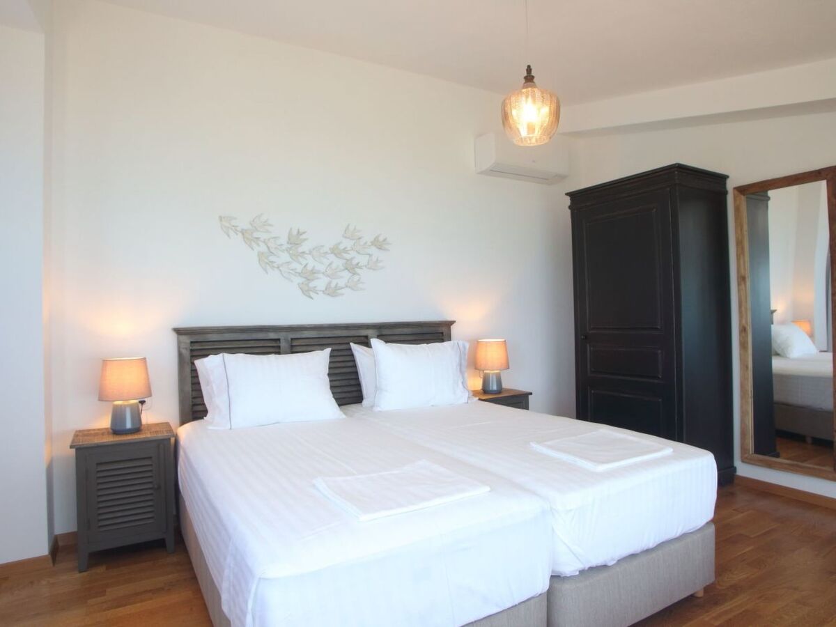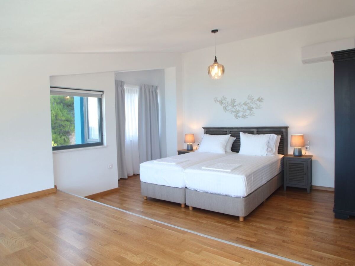 When you enter this fantastic house on the ground floor, there is the spacious living room and kitchen decorated with high quality furniture and glass sliding doors around that allow you to enjoy the infinite blue of the sea and the beauty of the Greek sky.On the upper floors you will find five king size modern en-suite bedrooms , from which you can enjoy the sea view through the large glass windows.Inside the villa compliments a fully equipped kitchen area, including oven, fridge-freezer, dishwasher, kettle, coffee-maker, and all kitchen utensils, so you can enjoy cooking with a view, along with washing machine, Wi-Fi, bed linen, bath and pool towels and many additional features to complete your holiday experience.Being on a slightly elevated level, 50m from the sea, the house offers superb views across the water whether from the comfortable armchairs on the terrace or one of the sunbeds on the decking of the swimming pool or even inside the infinity swimming poolThe bed positioning and room layout allows you to take in views of the Mediterranean and its beautiful sunsets from wherever you are.During the day, big balconies help you enjoy the sublime lines of waves and during the night, the illuminated coastline from Agios Nikitas village stretching like a painting in front of you.