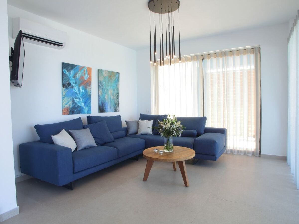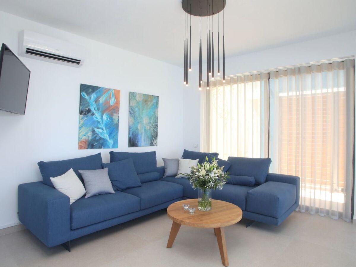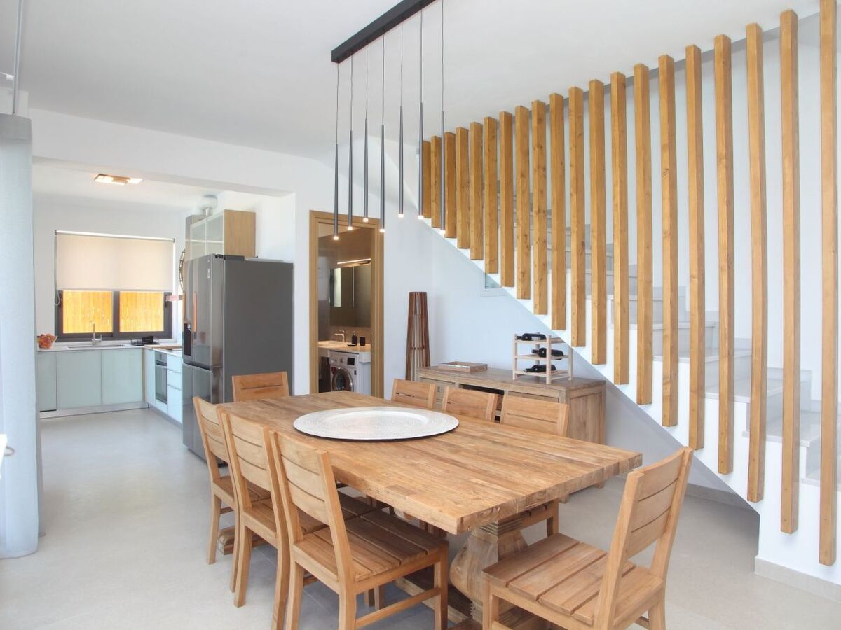 It is furnished with armchairs, an 8-seat dining table and sun loungers, chairs and gas BBQ where you can really enjoy your holiday, soaking up the best Mediterranean Sunsets.The 9 x 5 cutting edge infinity pool is right in front of the terrace.