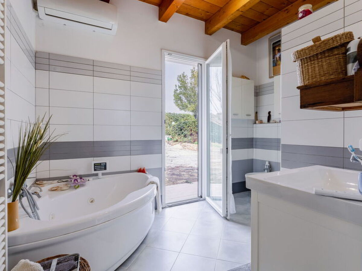 La salle de bain, équipée d'une baignoire à hydromassage, est parfaite pour se détendre après une journée intense.