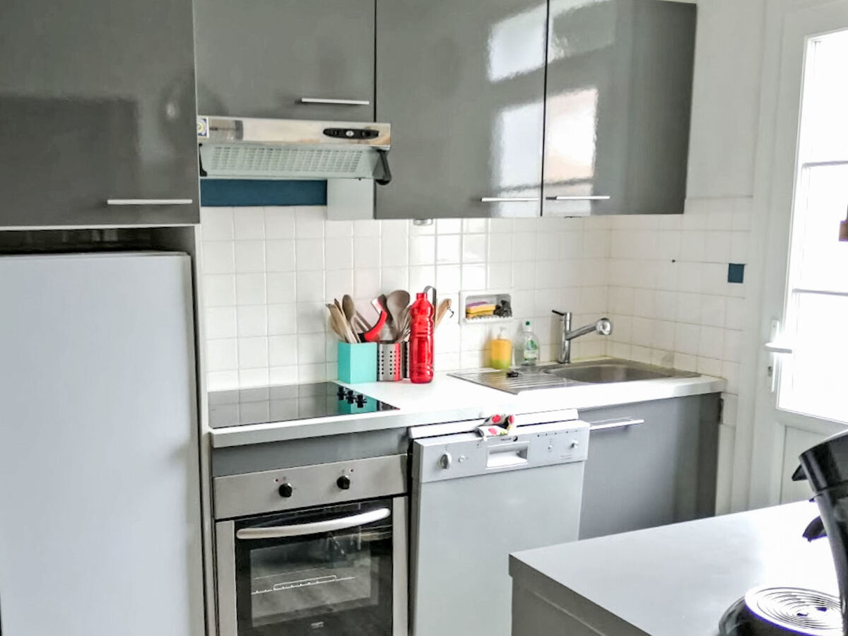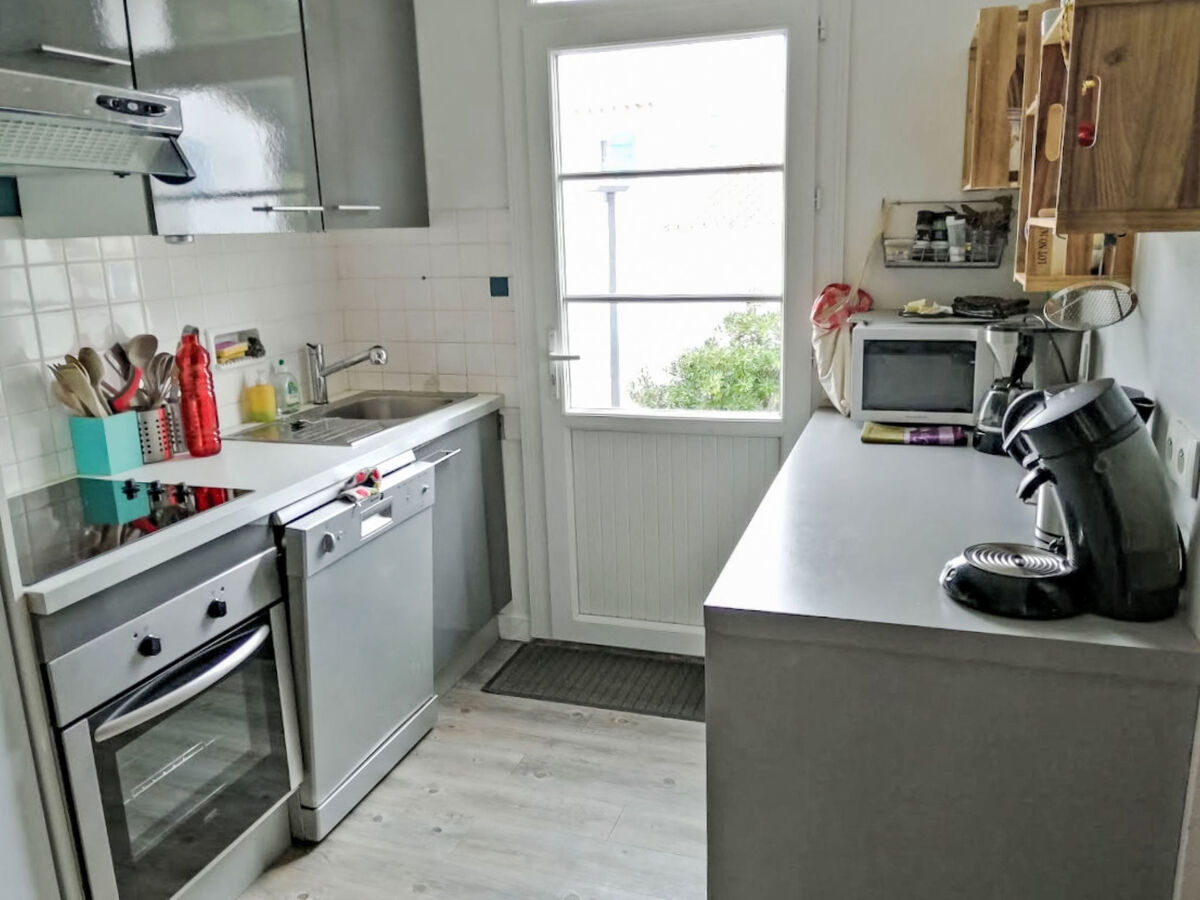 Cuisine ouverte (four, lave-vaisselle, 4 plaques vitrocéramiques, grille-pain, bouilloire électrique, micro-ondes, cafetière électrique).