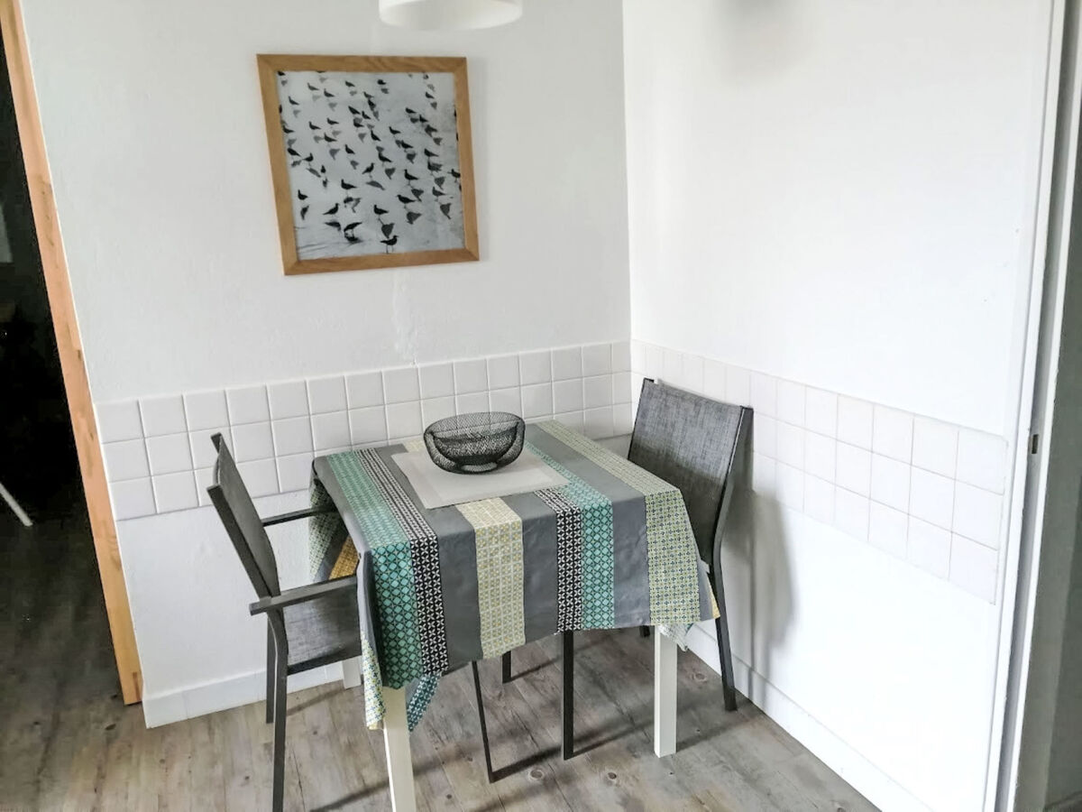 Rénovée, aménagement agréable: séjour/salle à manger avec table pour les repas et TV (écran plat).