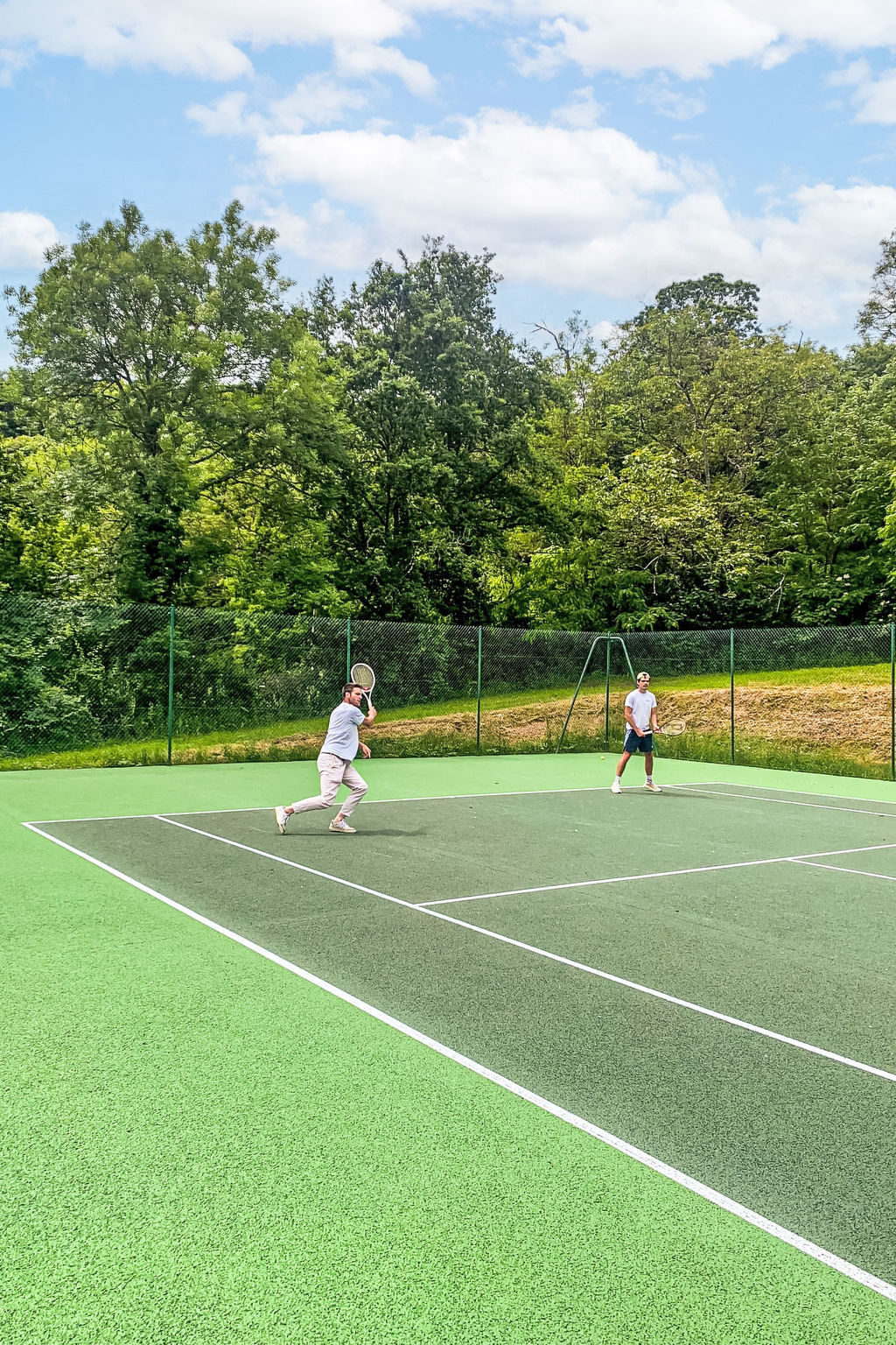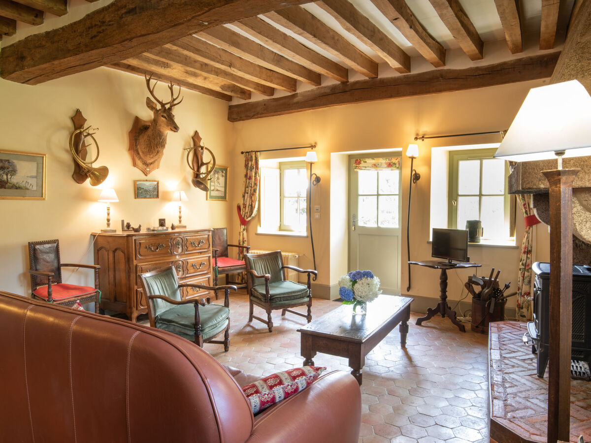 Aussi, un terrain de 300 ha, un parc 10 ha, un jardin entretenu avec pelouse et arbres, un verger, ainsi qu’une piscine clôturée (10 x 5 m) avec marches intérieures sont disponibles à l’extérieur, tous usage commun. Une cour, un étang naturel et une table de ping-pong sont à usage privé.