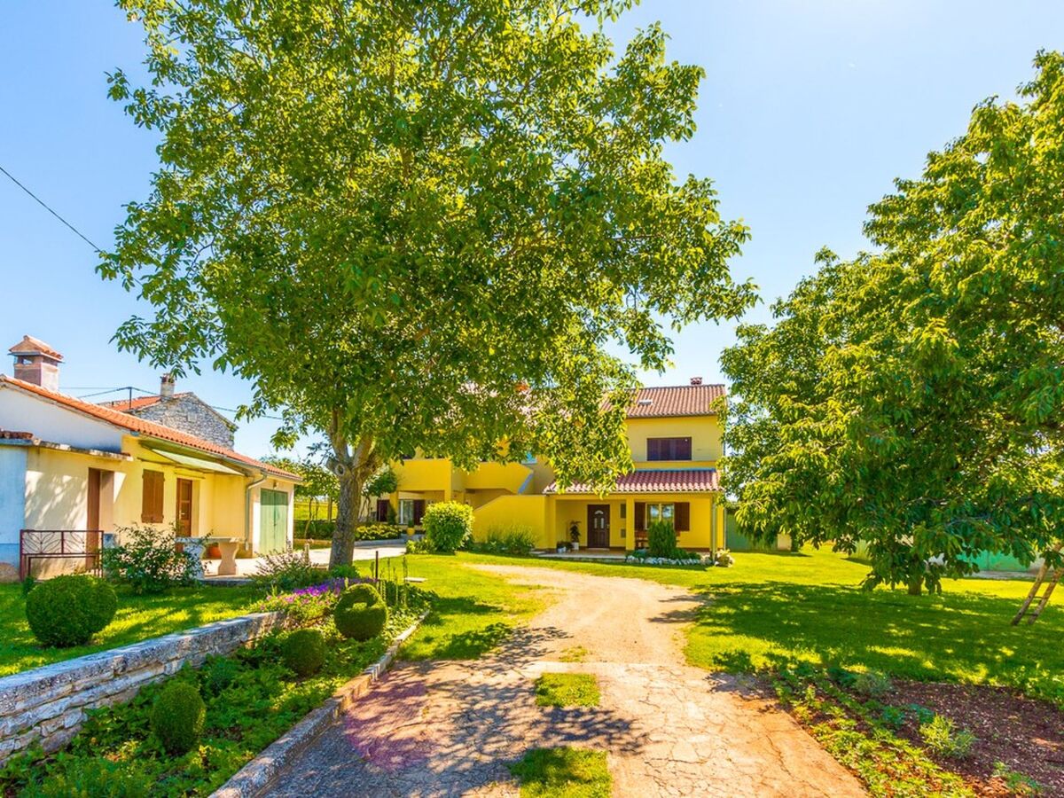 This beautiful yellow house in Grandići, situated near the village of Barban, spreads over five thousand square meters of private land and attracts with its rural charm, both outdoors and indoors.
