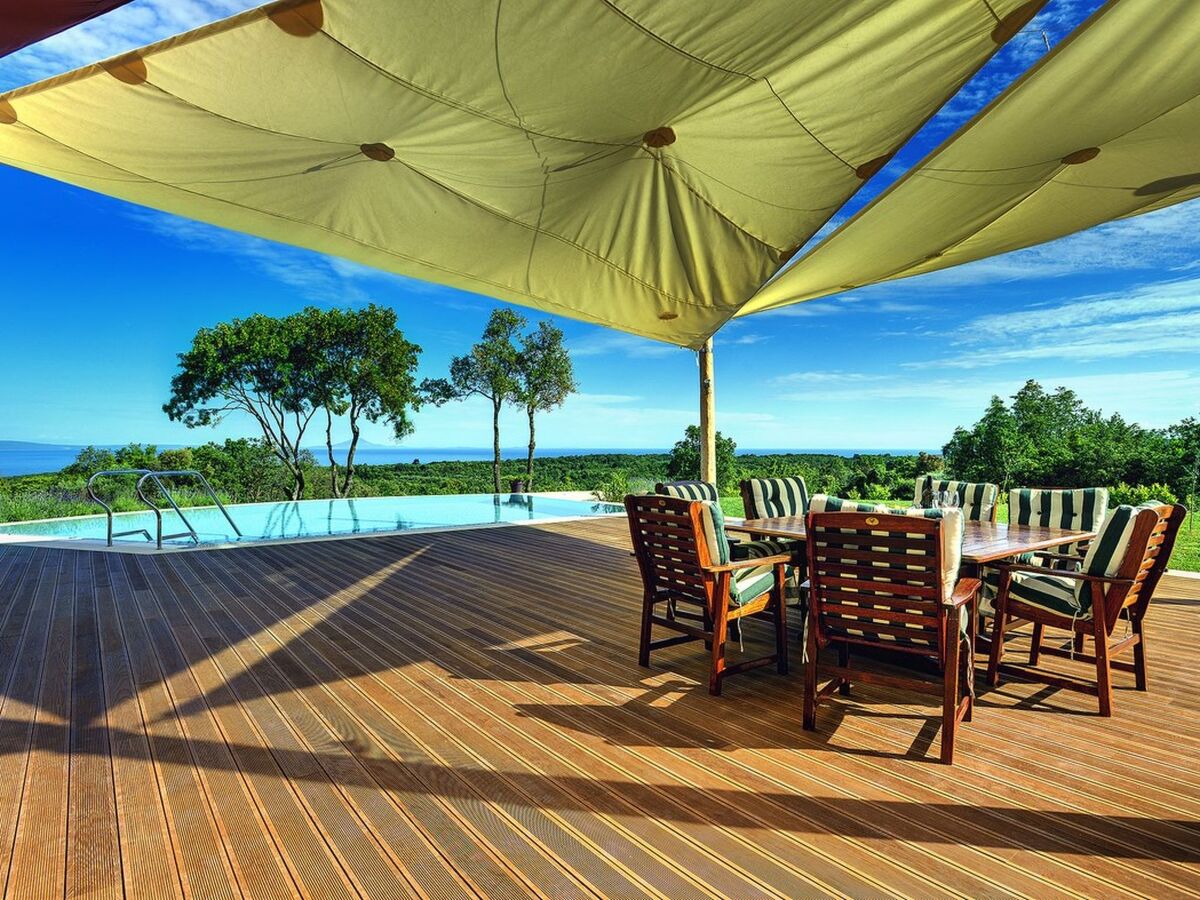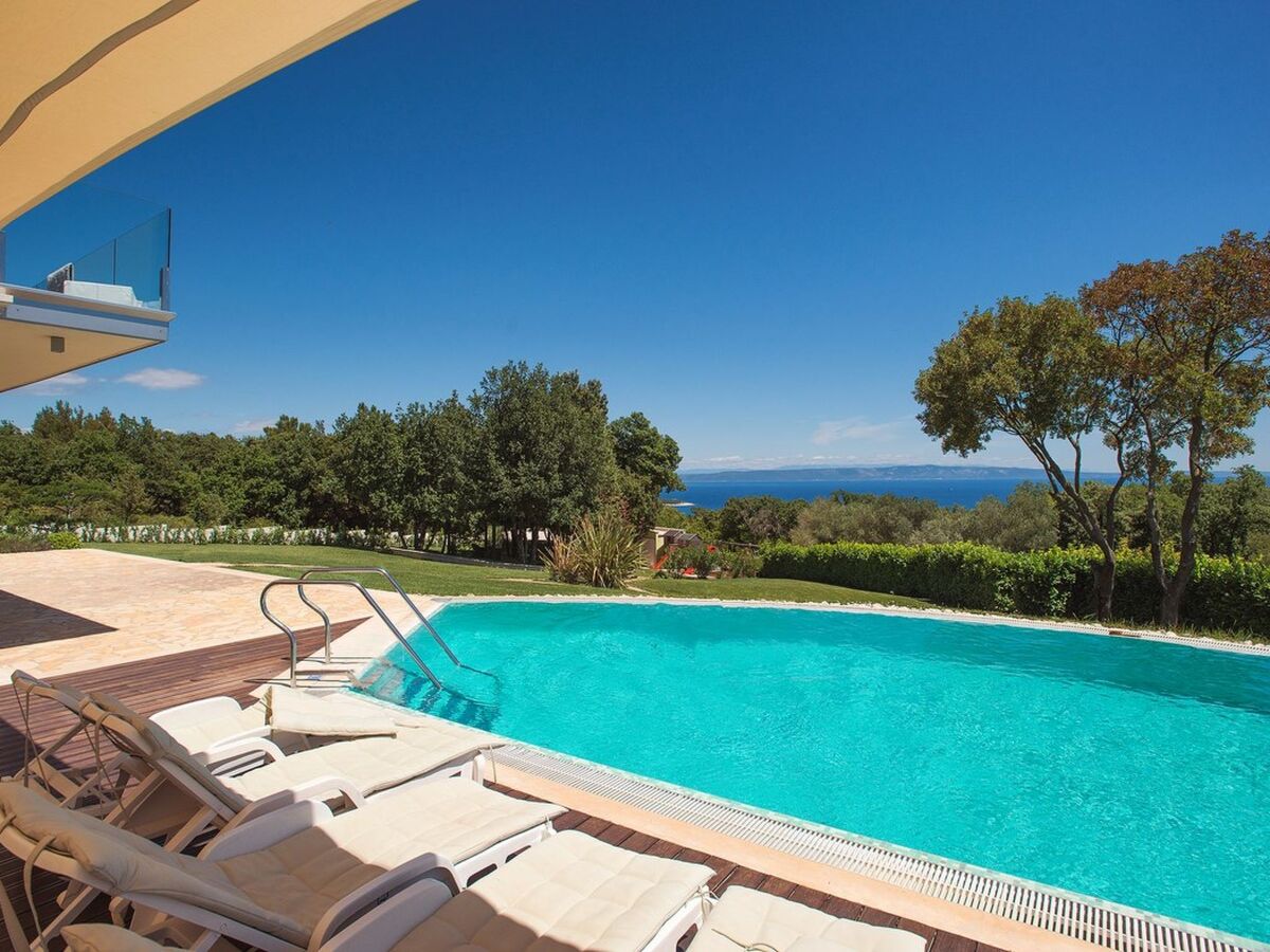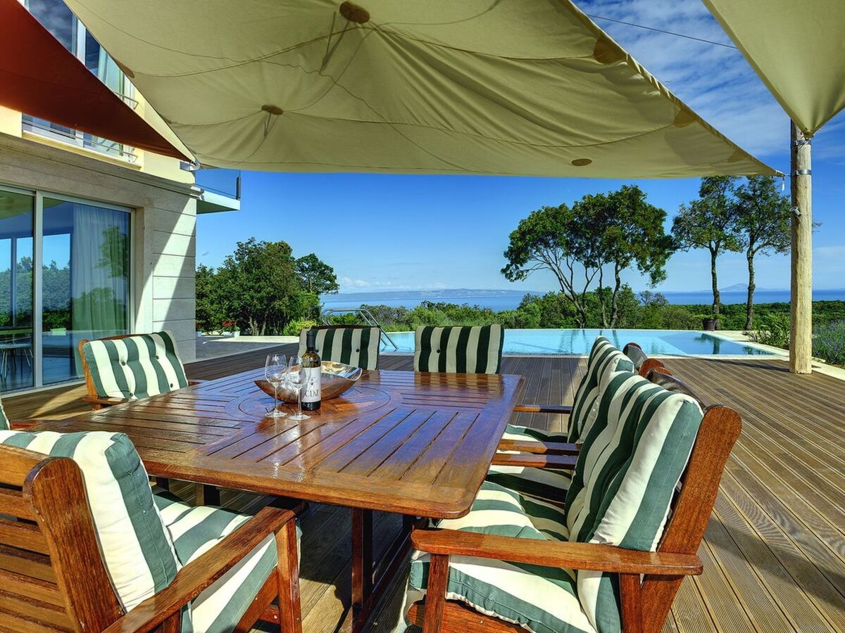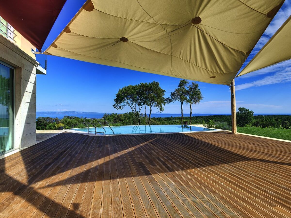 Villa Adriana is a 3 bedroom, 4 bathroom detached house with an infinity pool located to one side of the wooden terrace, offering views of the endless green landscape, with a touch of blue on the distant horizon of the Kvarner bay.
