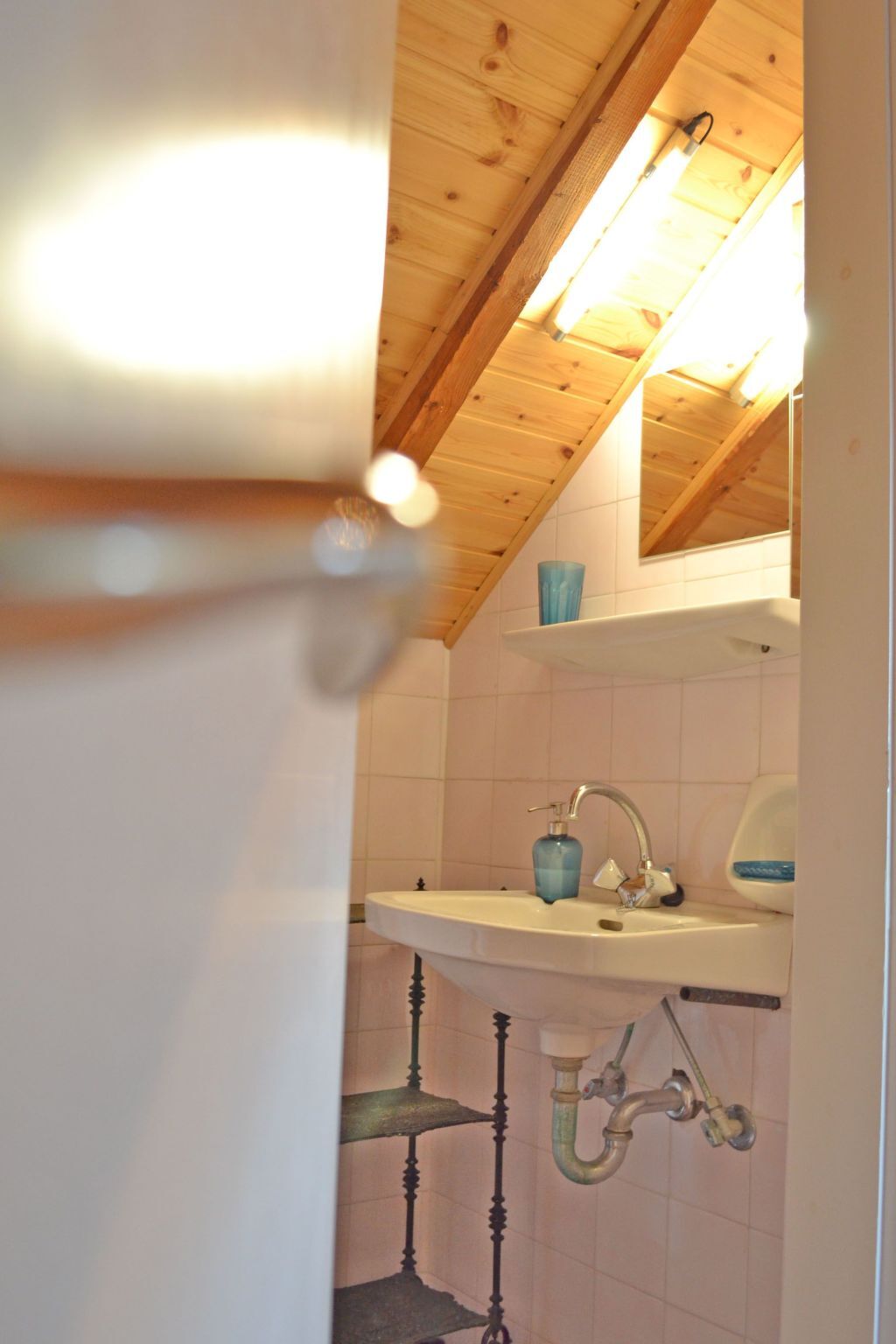 The lower ground floor features a romantic bedroom with a vintage double bed (140 x 200 cm), a private bathroom with a shower, wash basin and toilet and a laundry area.